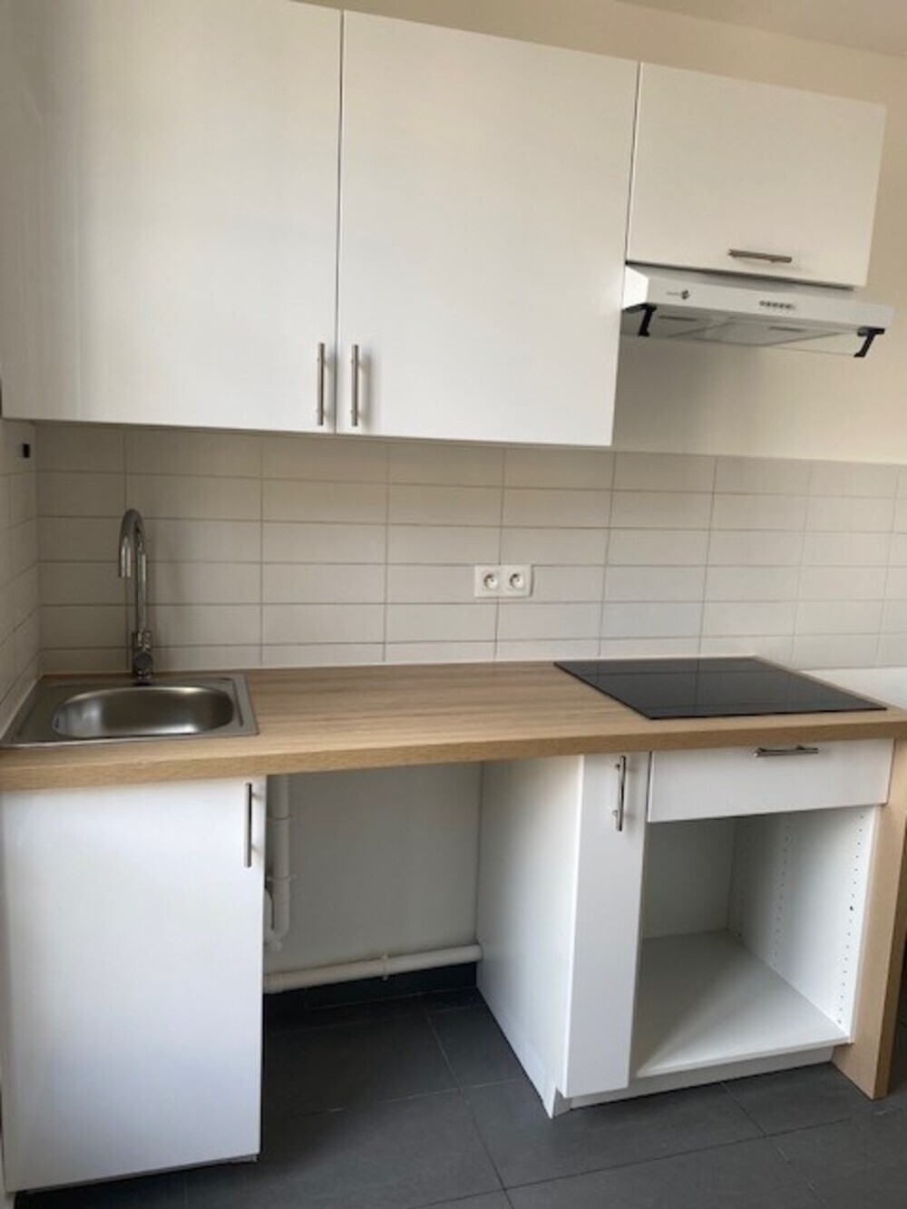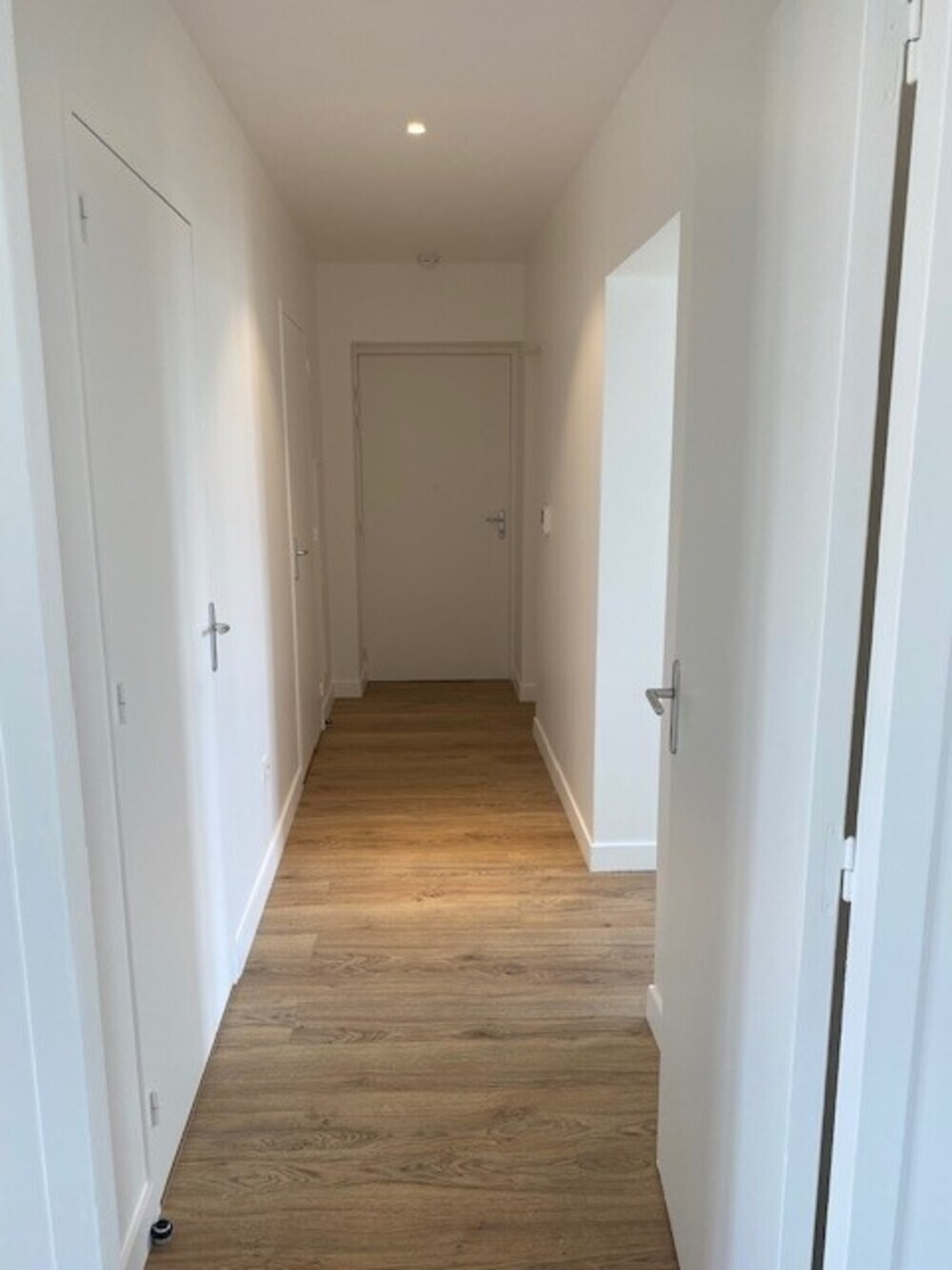 Il est composé d'une entrée, d'un séjour, d'une cuisine aménagée et équipée (plaques de cuisson et hotte), de deux chambres et d'une salle de bains avec WC.