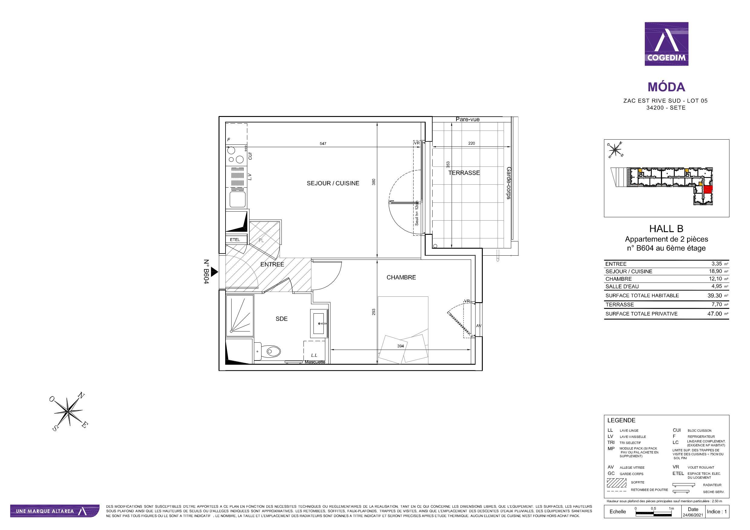 Au 6ème étage d'une résidence livrée en avril 2024, située dans le quartier RIVES SUD à proximité des commerces, services et de la clinique Sainte-Thérèse, très beau 2 pièces composé d'une pièce principale avec cuisine ouverte aménagée et semi-équipée donnant sur une terrasse de 7.70m2 avec vue dégagée, une chambre, une salle d'eau et un wc séparé.