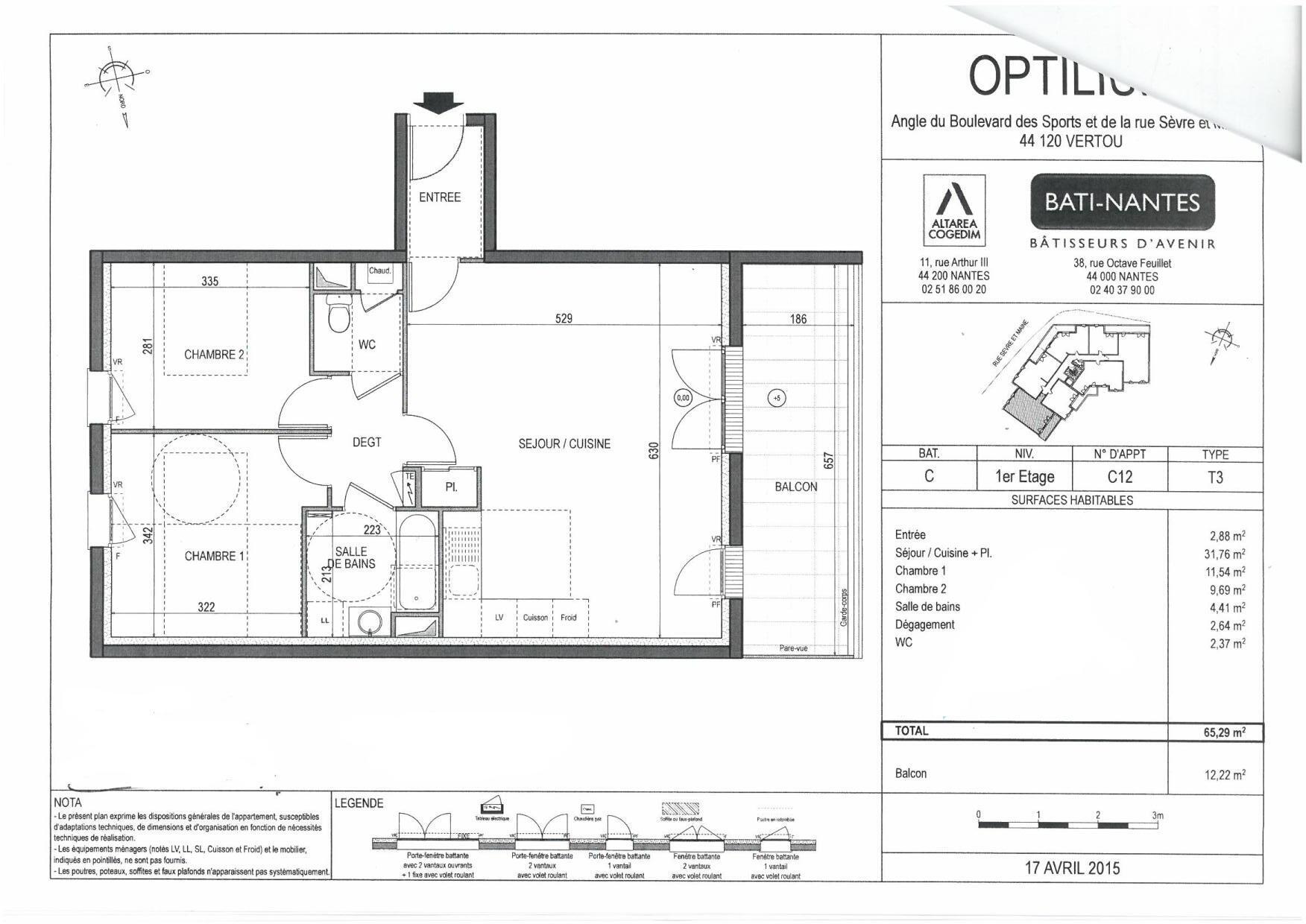 Agréable T3 traversant de 65.29m² et balcon de 12.22m² dans une résidence agréable comprenant une entrée, une cuisine aménagée ouverte sur séjour, deux chambres, une salle de bain et WC indépendant.