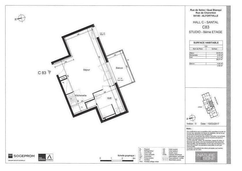 Un Studio (C83) d'une surface 28,07m² au 8ème étage avec ascenseur.