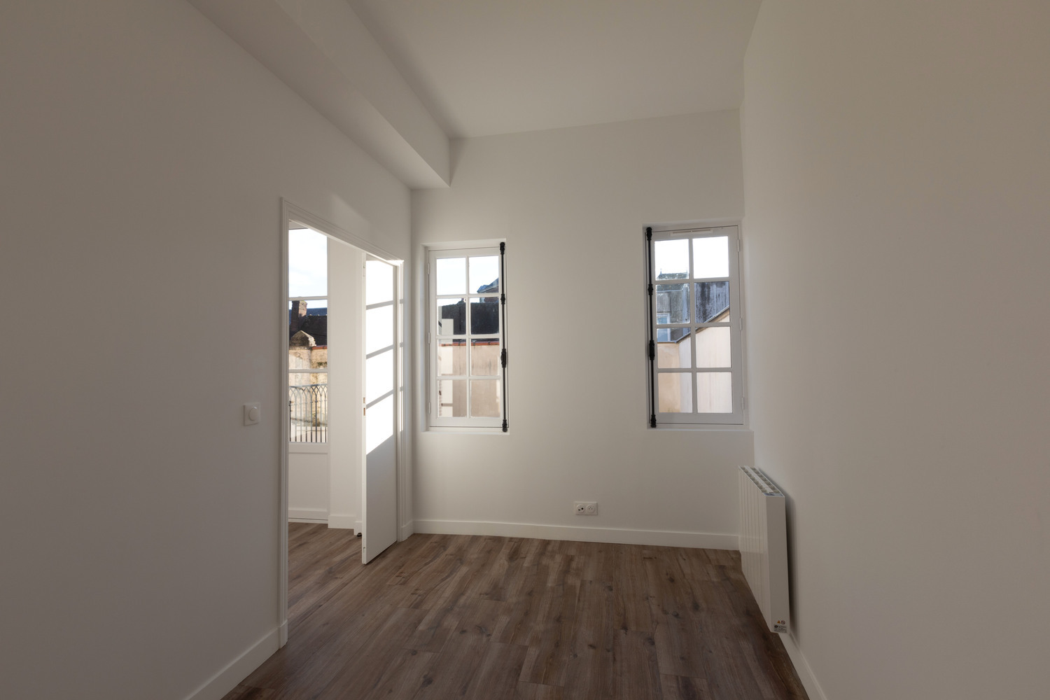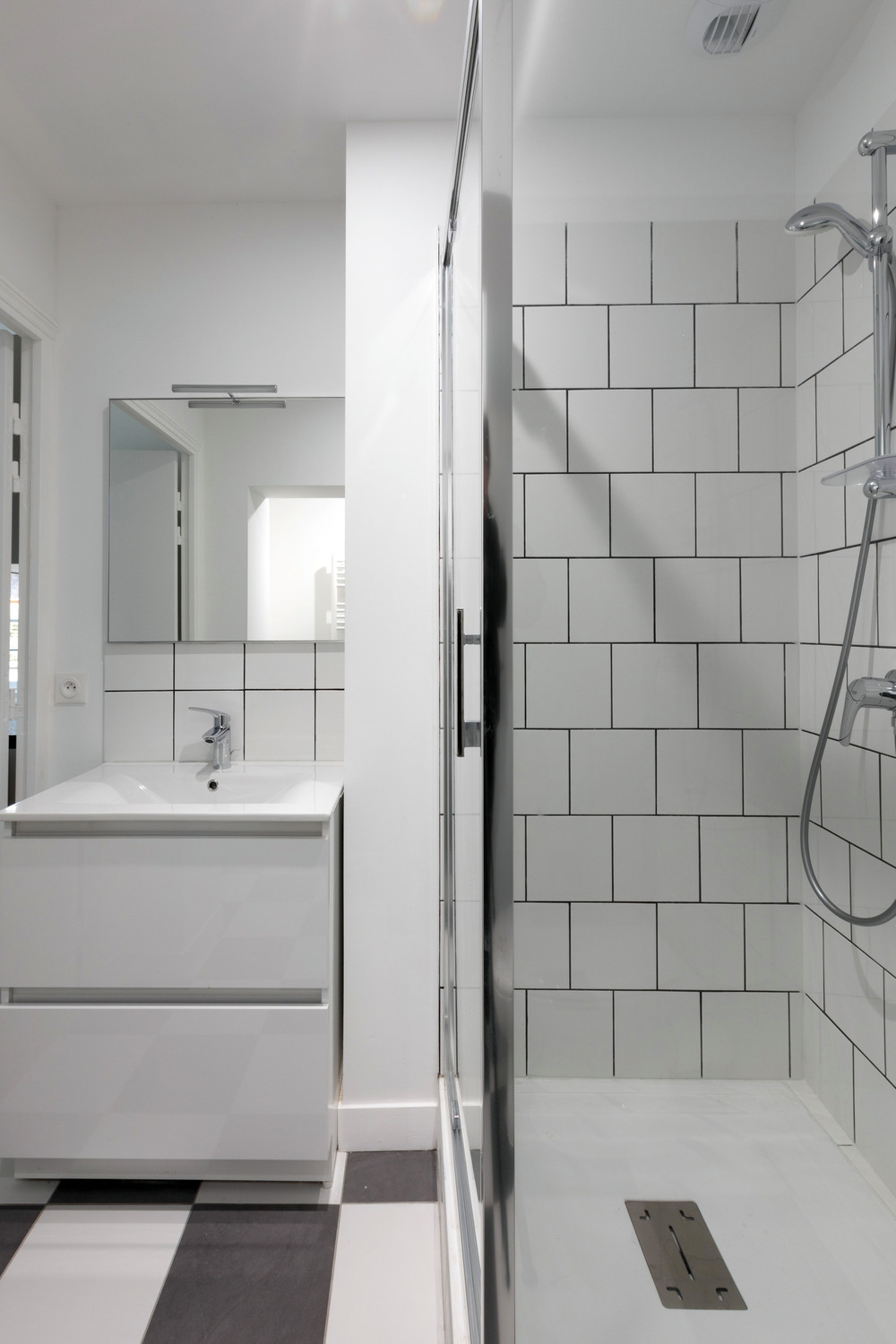 Une salle d'eau et une chambre.