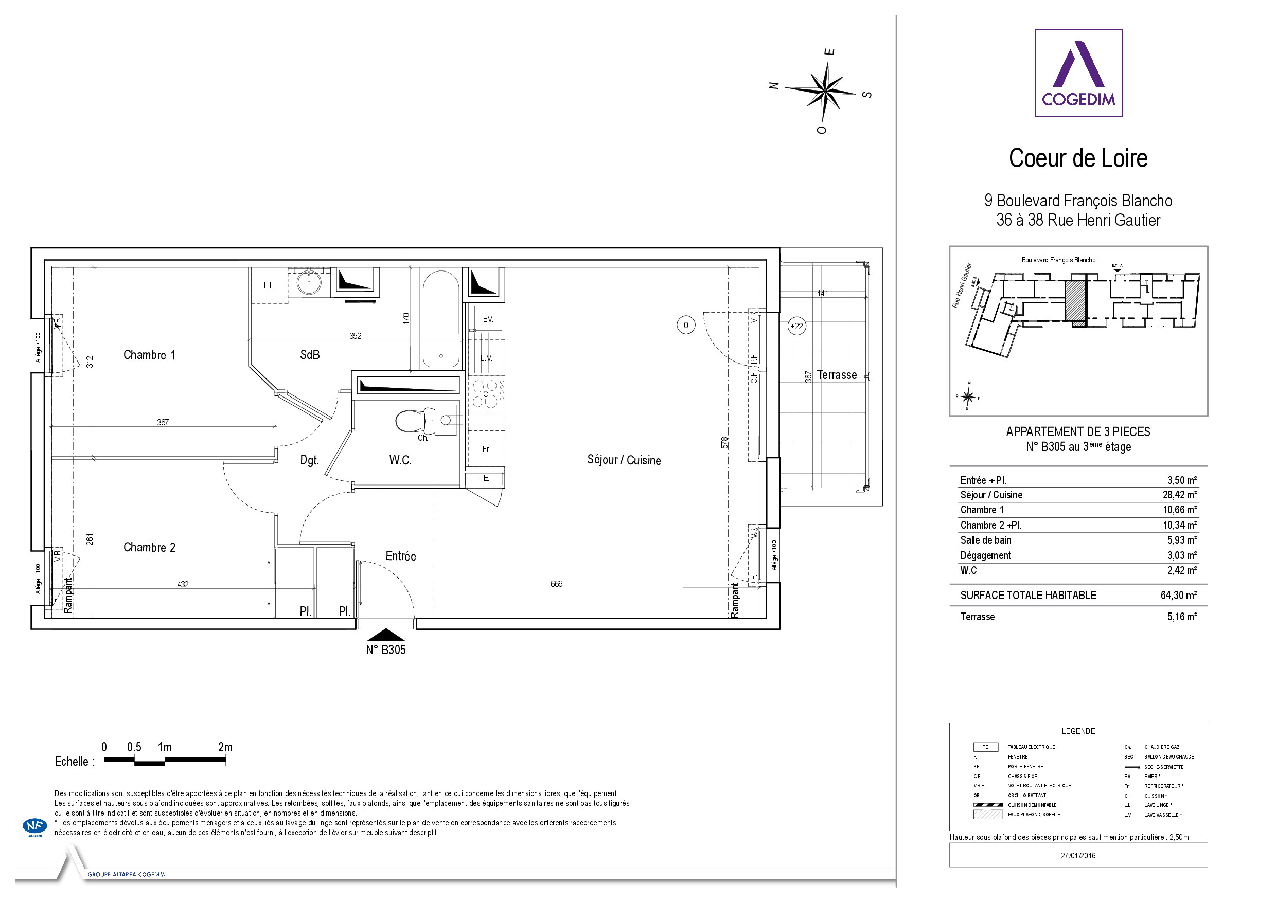 Agréable T3 de 60,30m² qui dessert une cuisine ouverte sur le salon, des wc séparés, une salle de bain ainsi que 2 chambres.