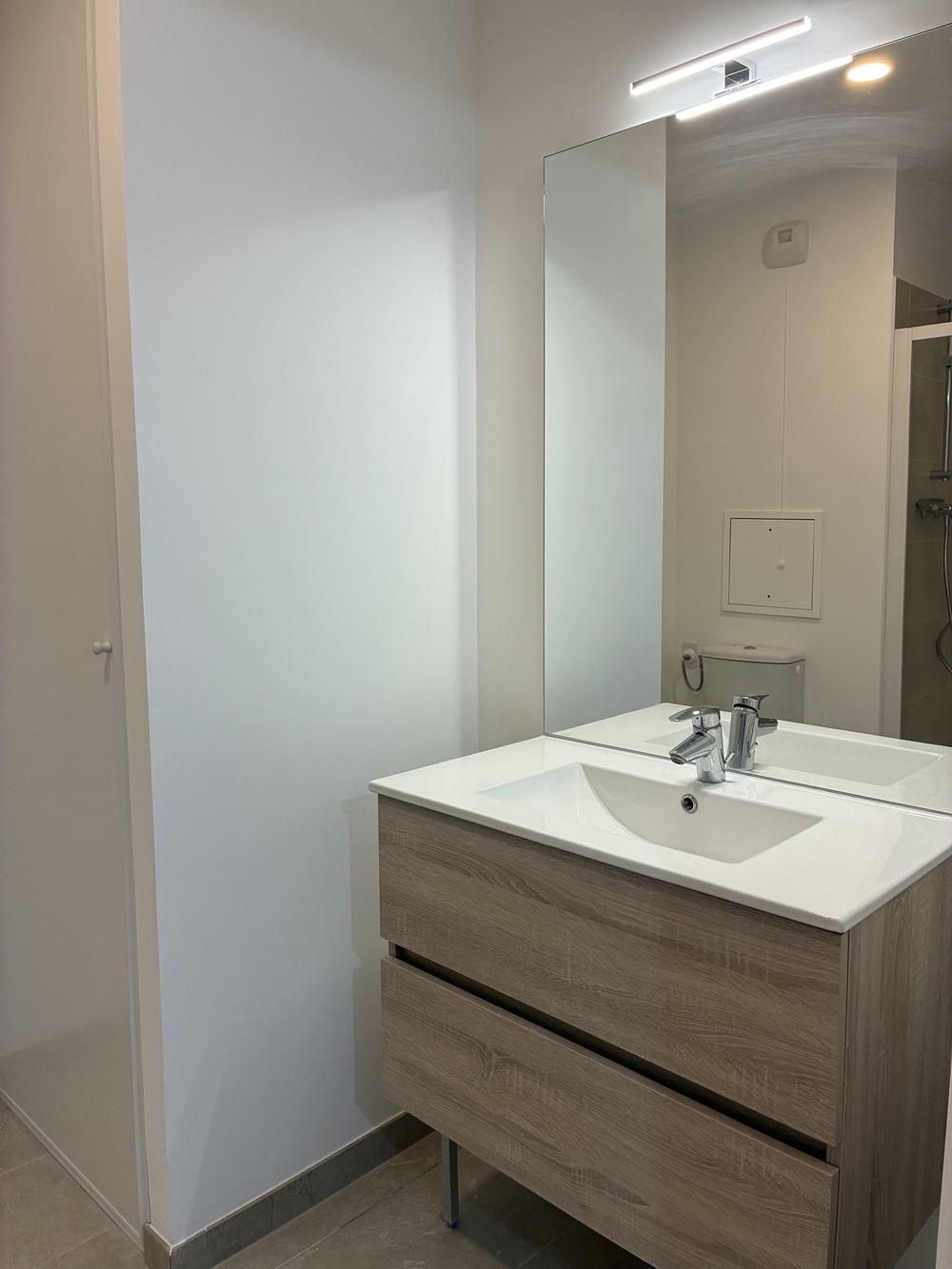 Dans le bâtiment "La Fontaine", au RDC, un 2 PIECES de 60.7m² comprenant, un séjour avec une cuisine aménagée et équipée, une chambre, une salle d'eau avec wc.
