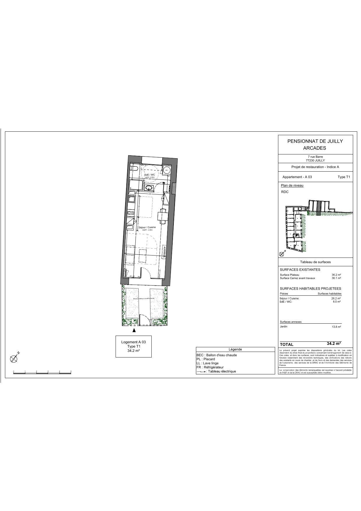 Dans le bâtiment "Arcades", au RDC, un STUDIO avec jardin de 34.2m² comprenant, un séjour avec une cuisine aménagée et équipée, une salle d'eau avec wc.