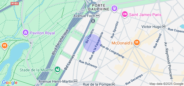 A louer, un emplacement de parking au 2ème sous-sol d'un immeuble sécurisé, quartier porte Dauphine, situé à l'angle de la rue Montevideo et de la rue de Longchamp, proche RER C Gare d'avenue Foch et métro ligne 2 Porte Dauphine / Maréchal de Lattre de Tassigny.
