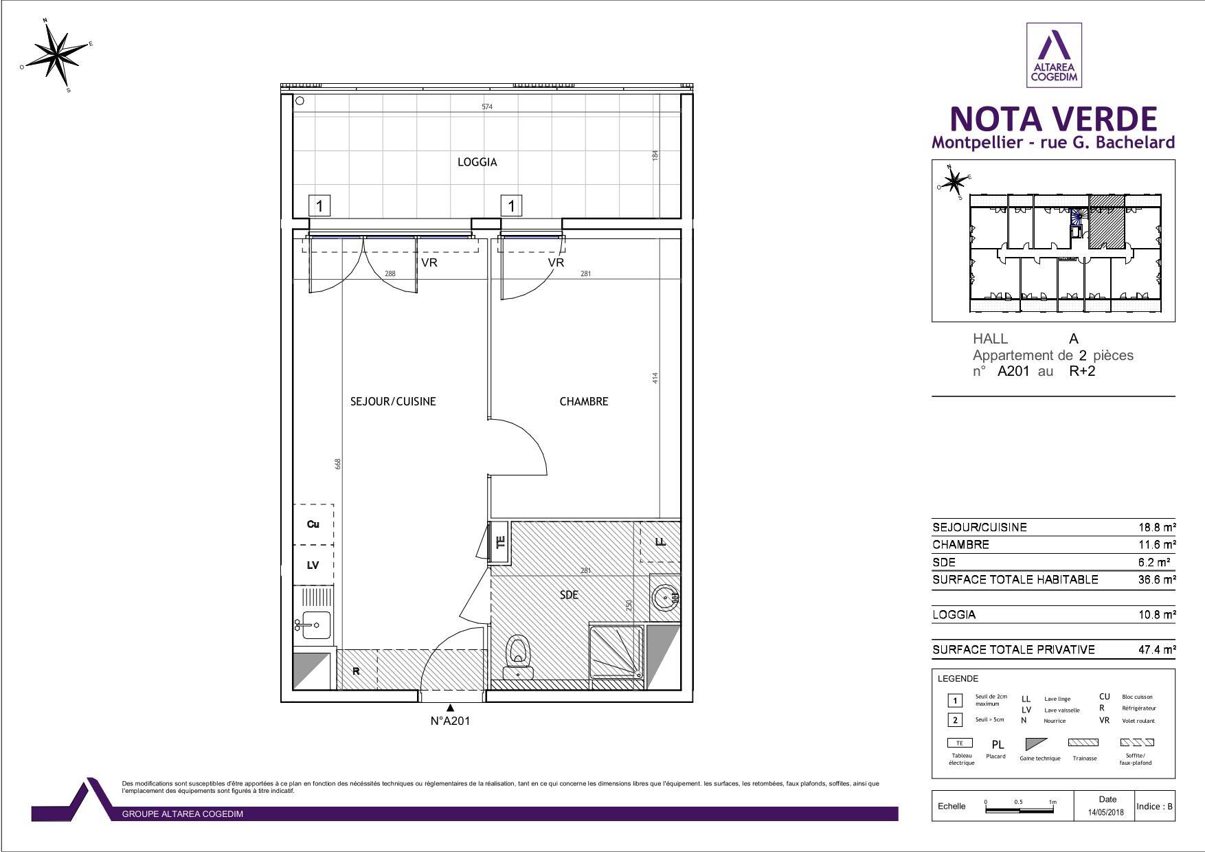 2 pièces de 36.6 m² avec terrasse couverte de 10 m² au 2ème étage. Secteur calme.