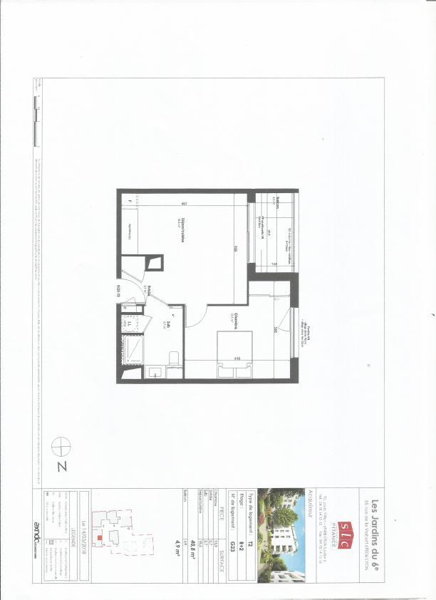 Appartement récent de type 2 de 40,80 m² au 2ème étage, exposé Ouest, composé d'un séjour/cuisine de 18,50 m² incluant une cuisine équipée (plaque de cuisson et hotte), d’une chambre de 13,90m² , d'une salle de bains, WC séparés, d’un balcon de 4,9 m². Eau froide, eau chaude et chauffage individuel électrique.
