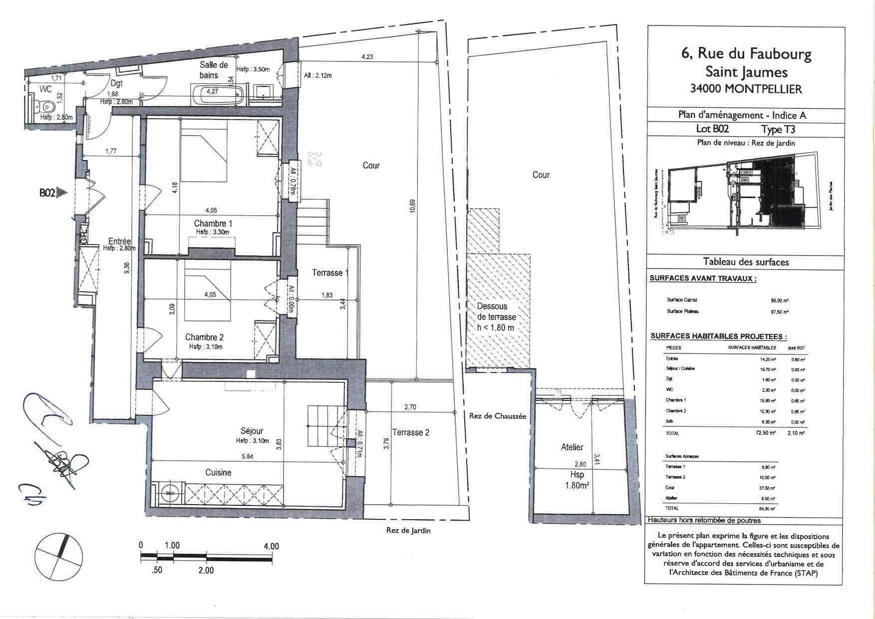 Rare - Superbe immeuble intimiste dans le centre historique- 6 faubourg St jaumes - Appartement avec double terrasse, cour spacieuse de 37.5 m² et atelier indépendant