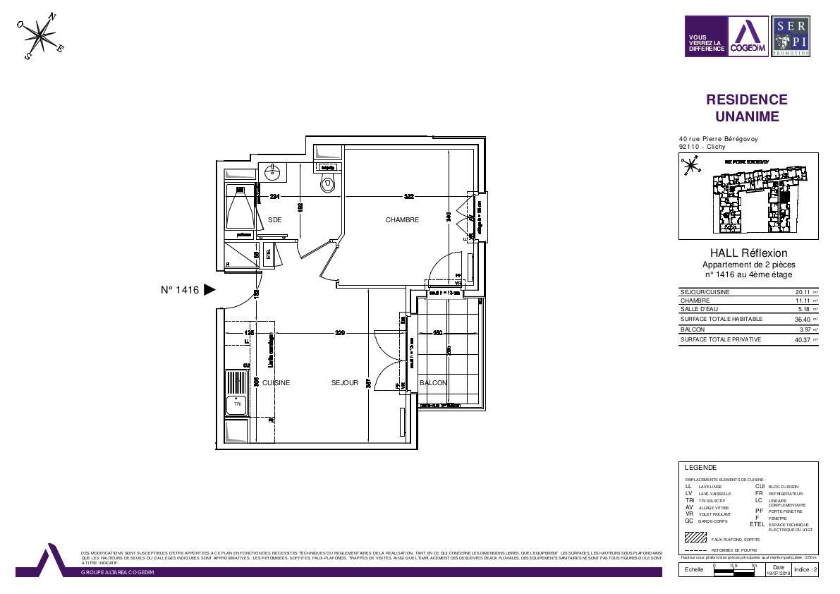 Dans une résidence contemporaine récente, un appartement de type 2 pièces (1416) d'une surface de 36,40m² au 4ème étage avec ascenseur.