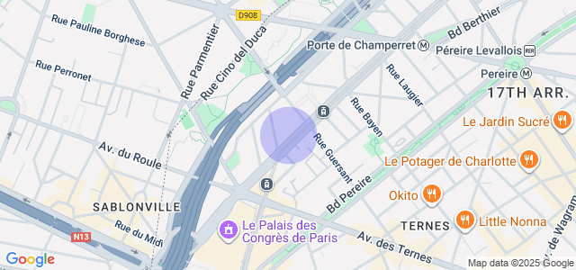 Boulevard Gouvion Saint Cyr, proche des commodités et à quelques minutes à pieds du RER C, métro 1 et 3.