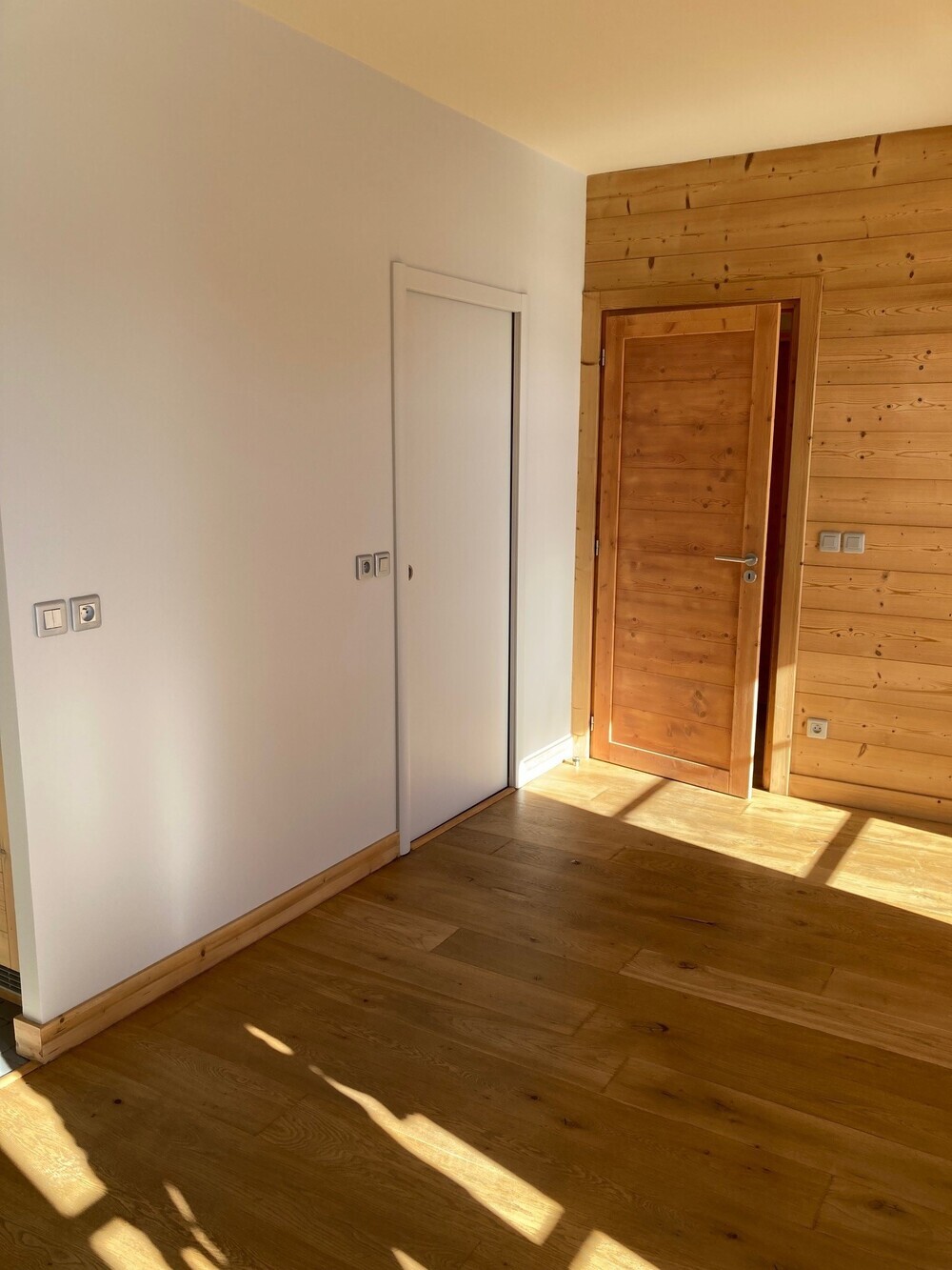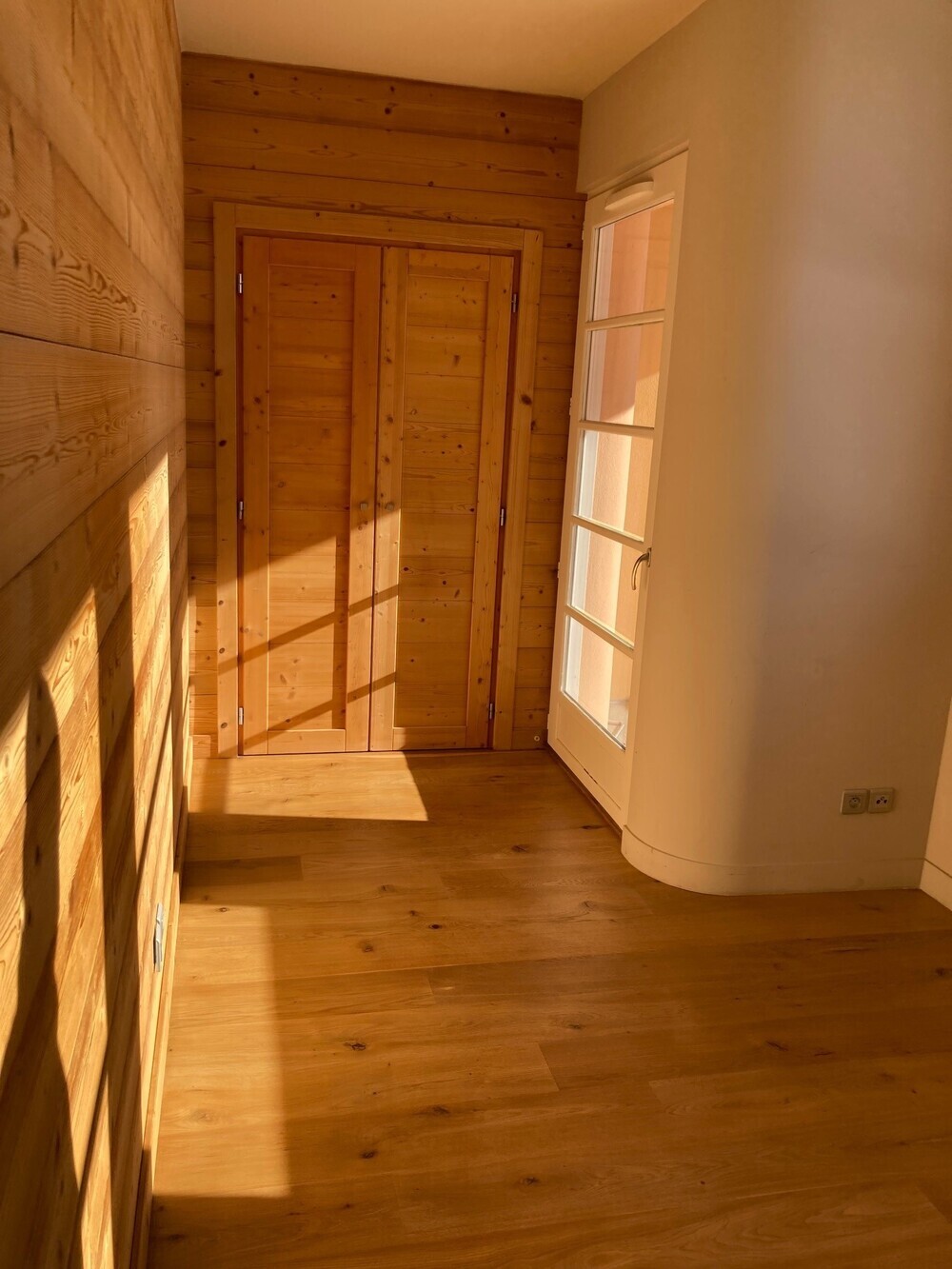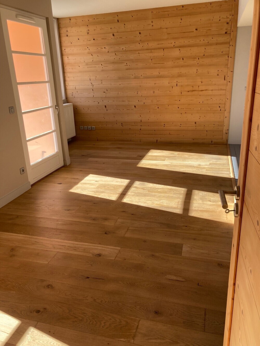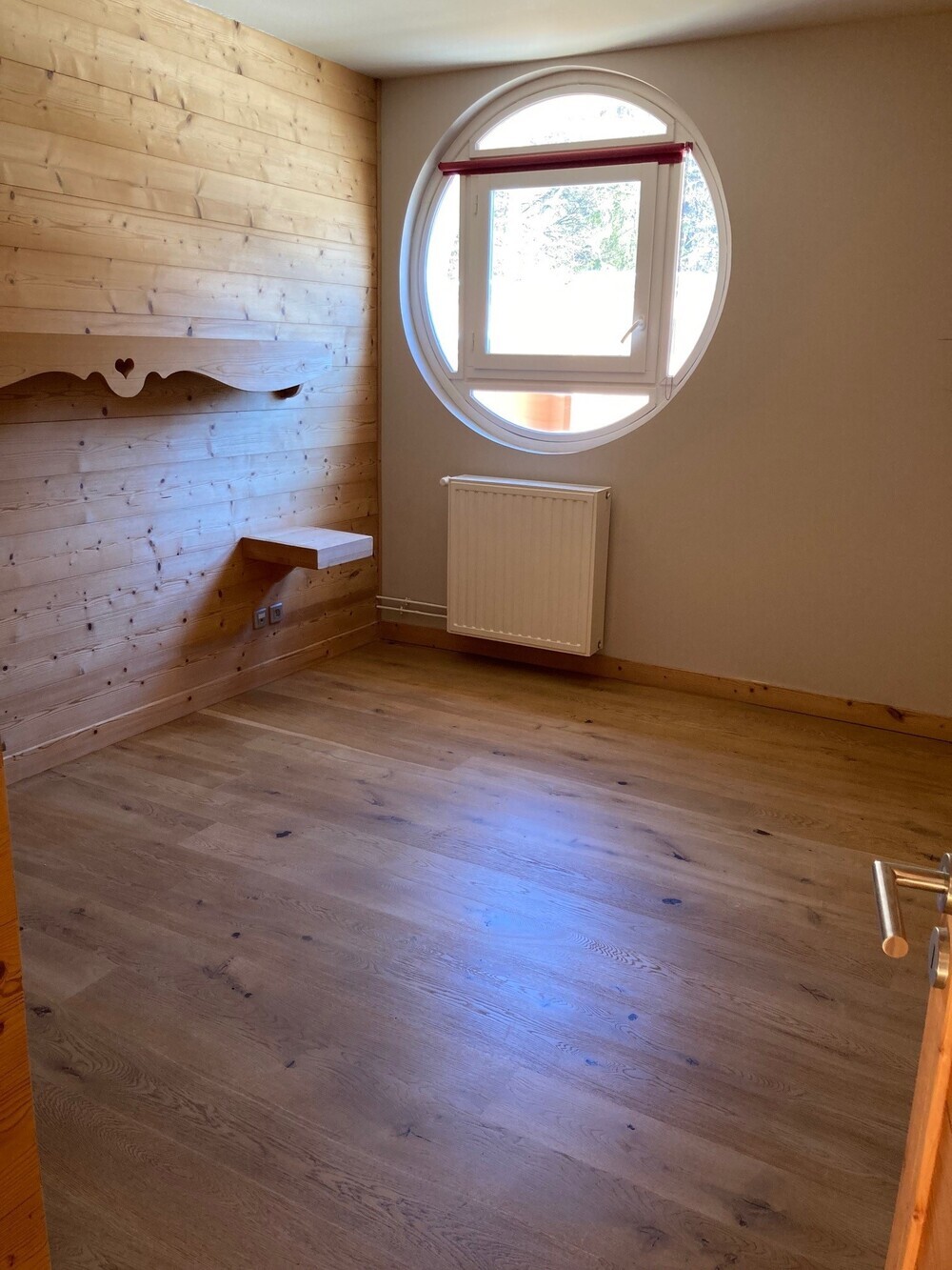 Passy - Plateau d'Assy - T3 de 57.77 m² au 1er étage comprenant une entrée, coin cuisine équipée d'un four, d'une hotte, une plaque vitro, un réfrigérateur/congélateur, lave vaisselle et placards, séjour avec parquet massif donnant sur le balcon, dégagement, 2 chambres aménagées de penderie. Une place de stationnement en sous sol. Gardien. Casiers à skis; local vélos, terrain de tennis, piscine.