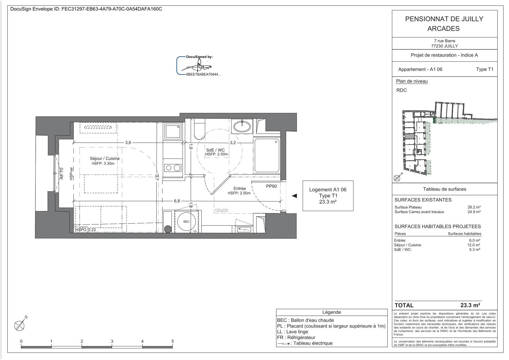 Au rdc, un STUDIO de 23.3m² comprenant, un séjour avec une cuisine aménagée et équipée, une salle d'eau avec wc.