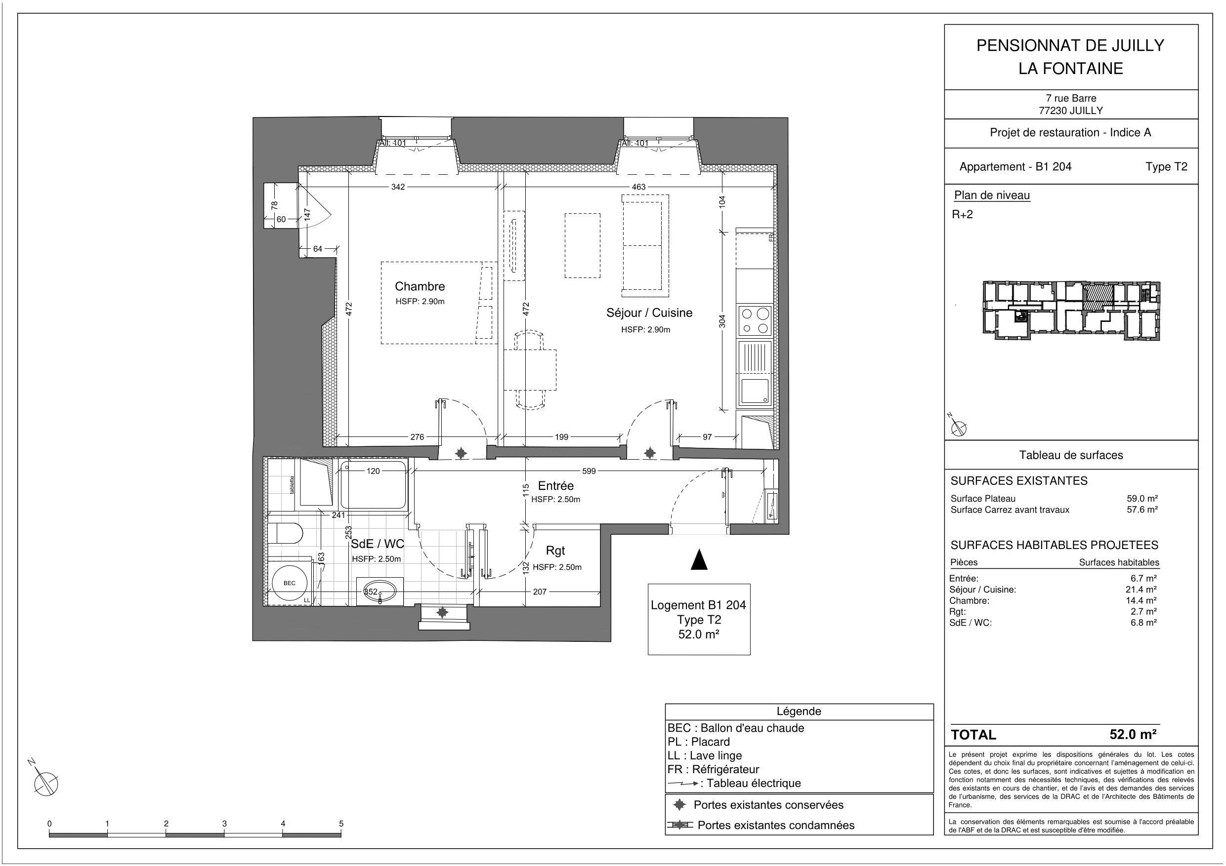 Au 2ème étage, un 2 pièces de 52m² comprenant, un séjour avec une cuisine aménagée et équipée, une chambre, une salle d'eau avec wc.