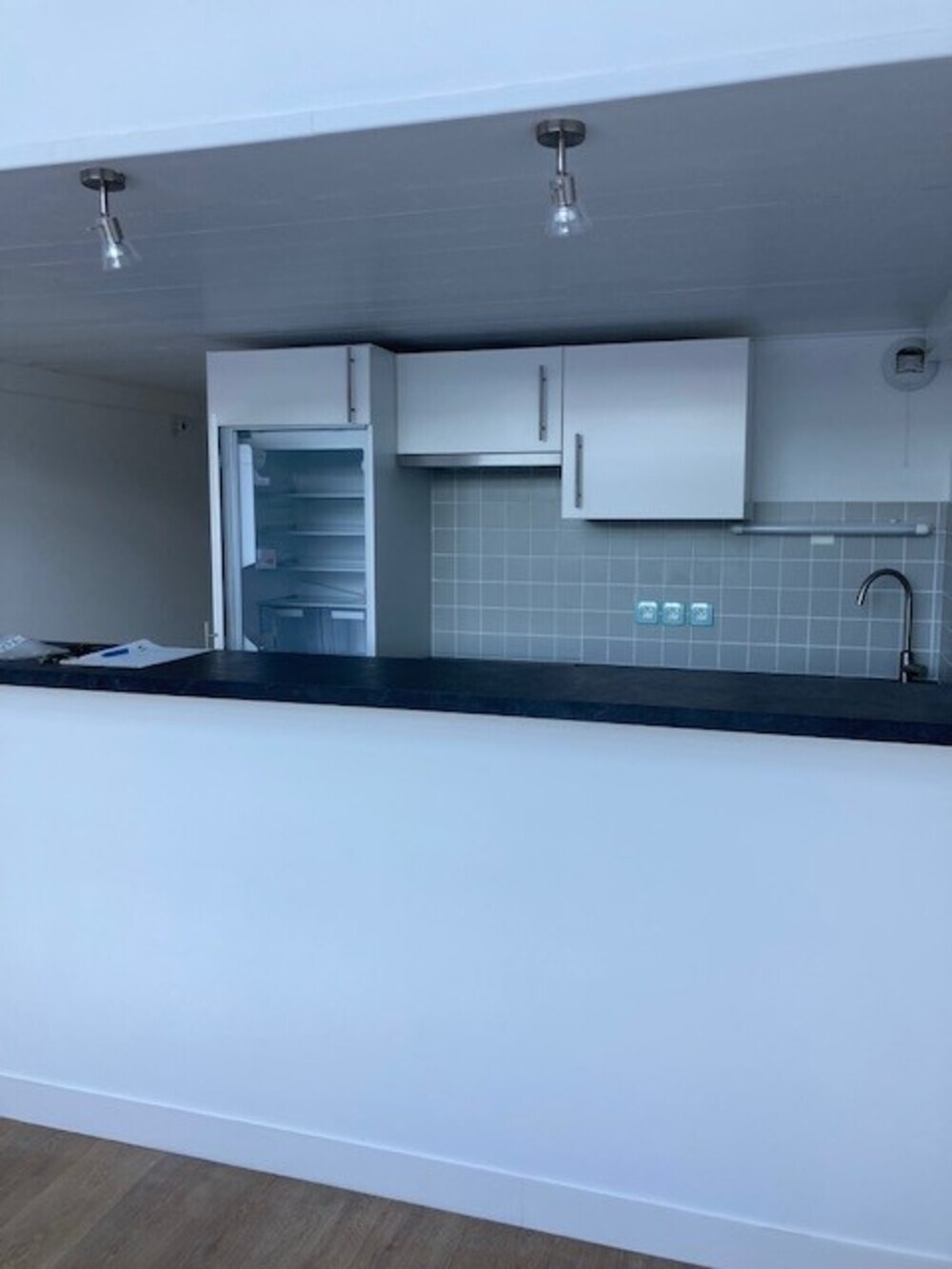 Le bien comprend un séjour avec parquet, un dégagement desservant la salle de bien avec douche et équipée (vasque, miroir, WC suspendu, sèche serviette).