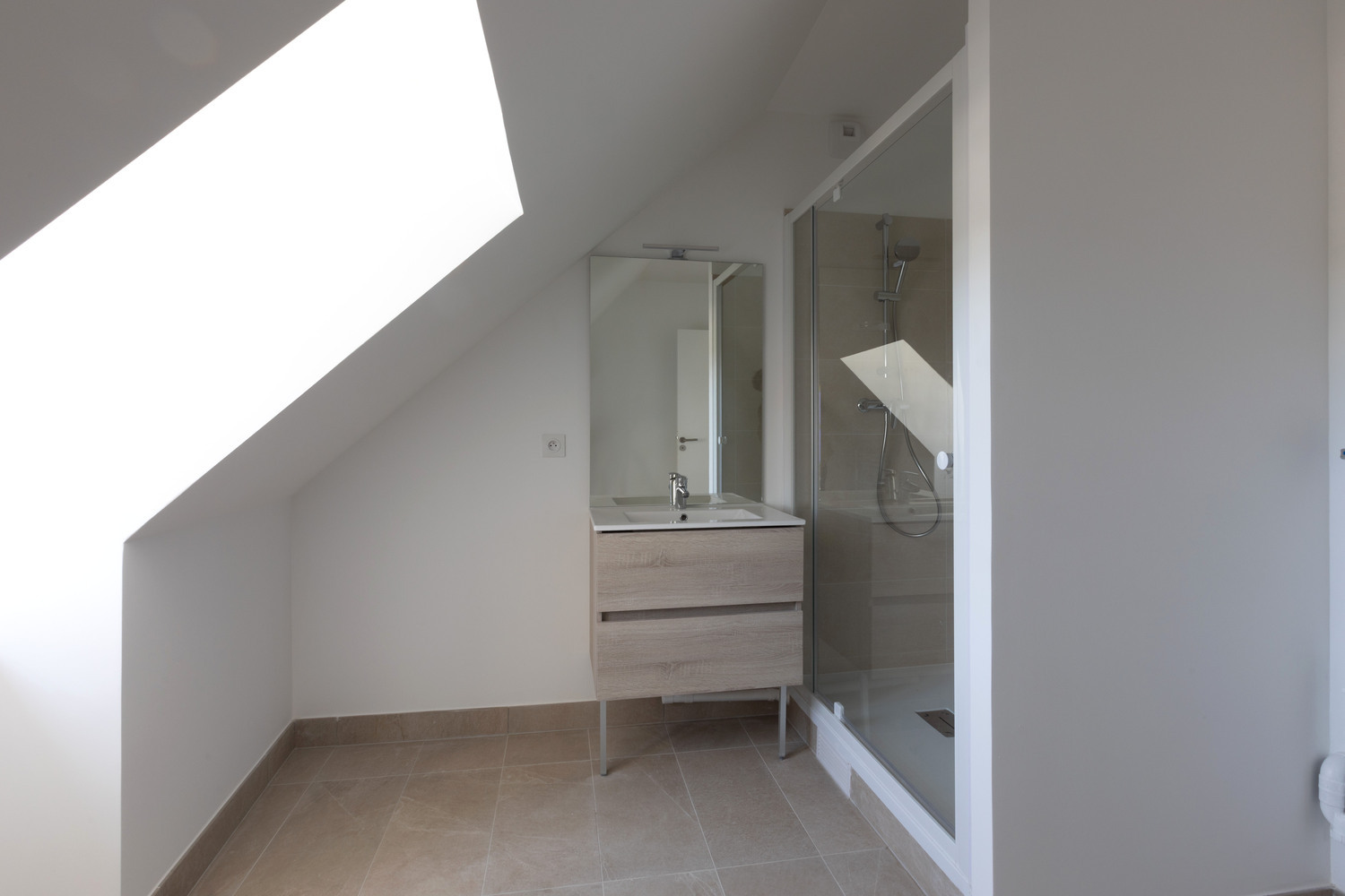 Au 3ème étage, un 2 pièces de 53.30m² comprenant, un séjour avec une cuisine aménagée et équipée, une chambre, une salle d'eau avec wc.
