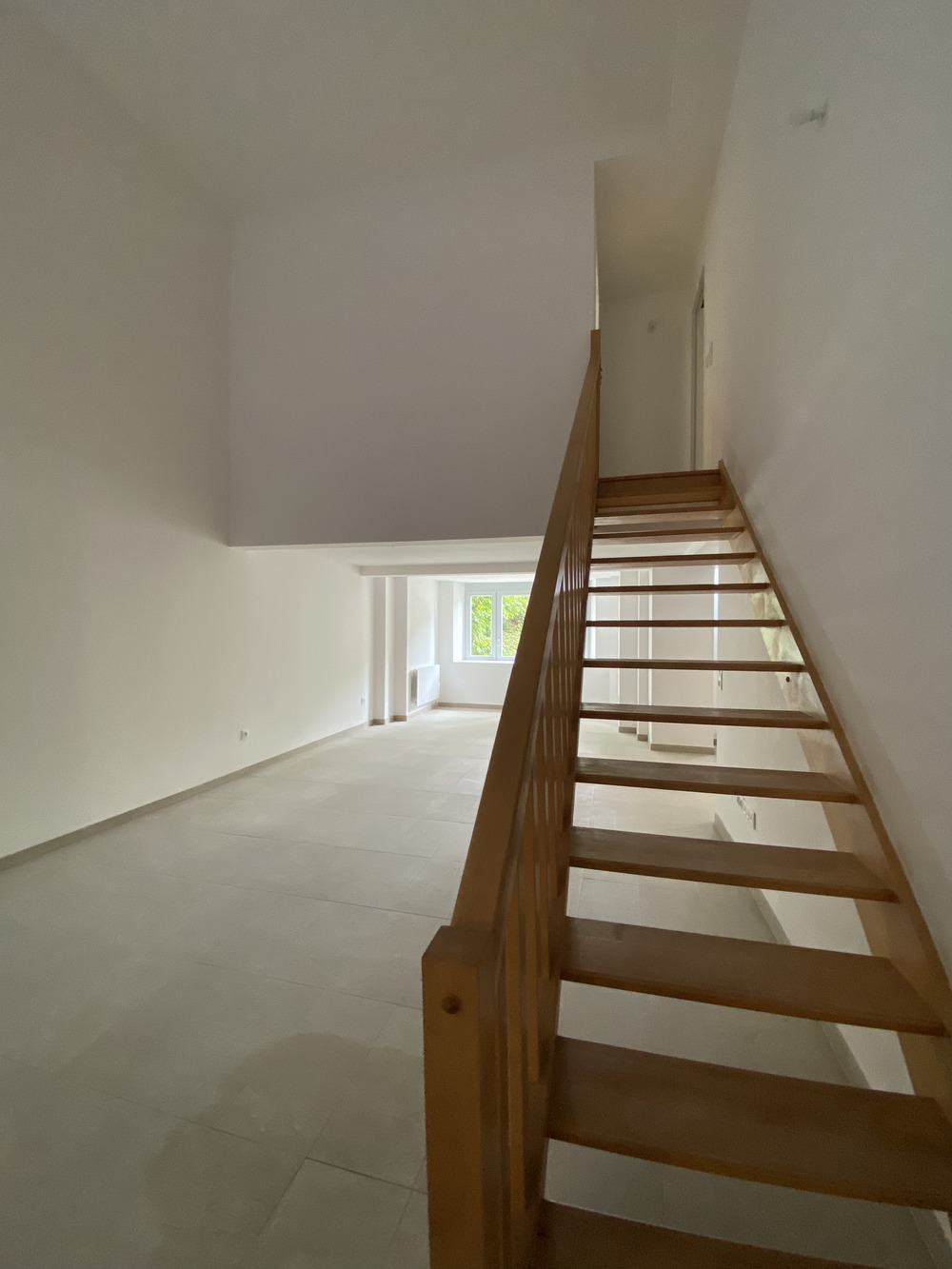 Au RDC, un 2 pièces en duplex de 66.30m² comprenant, un séjour avec une cuisine aménagée et équipée, une chambre, une salle d'eau avec wc.