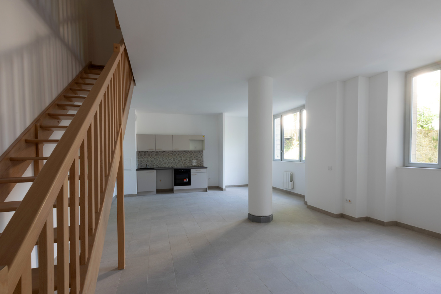 Au RDC un 3 pièces de 95m² comprenant, un séjour avec une cuisine aménagée et équipée, deux chambres, une salle d'eau avec wc.