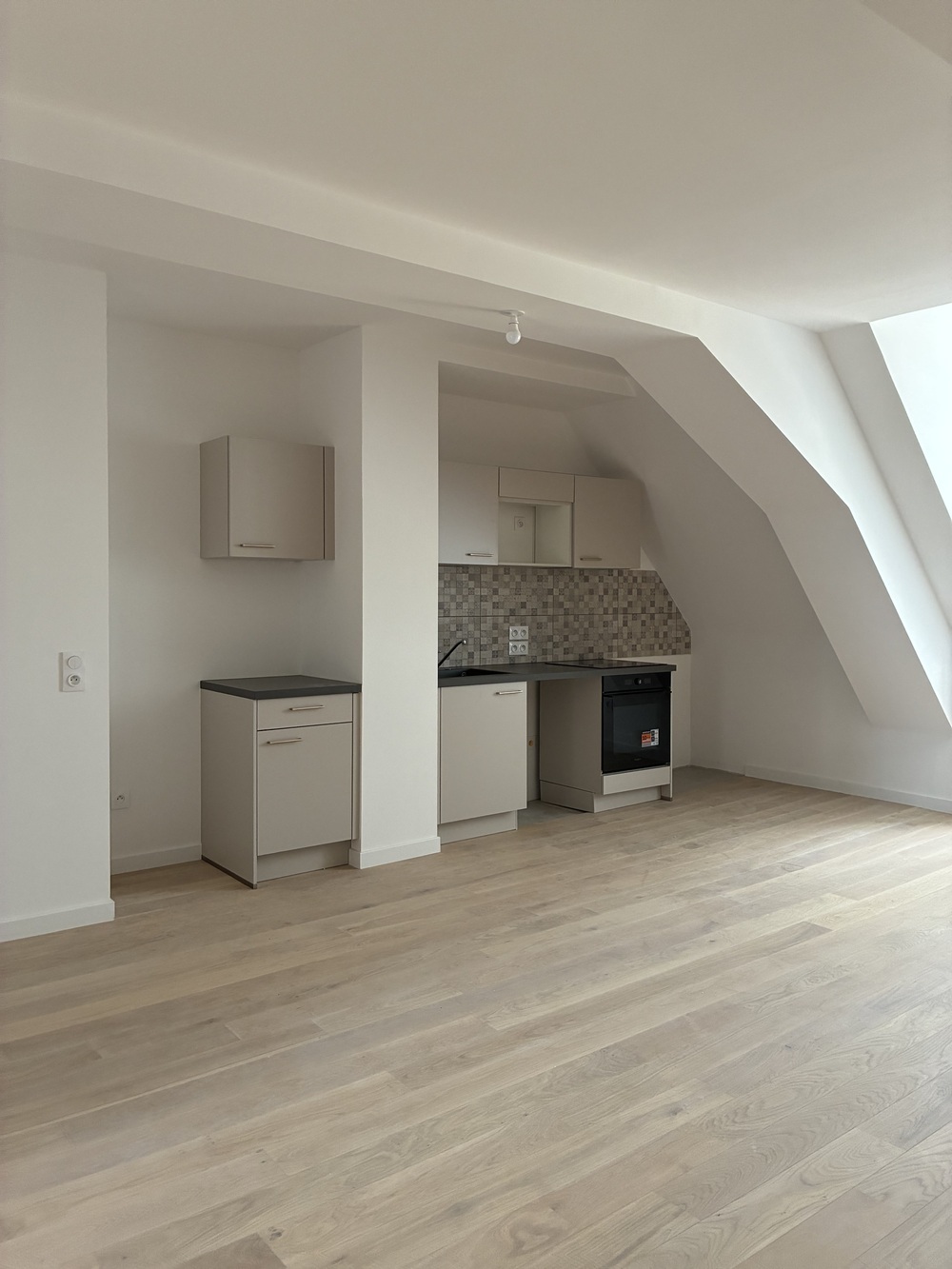 Il est composé d'une entrée, d'un séjour ouvert sur une cuisine aménagée et équipée (plaques de cuisson, four et hotte), de deux chambres et d'une salle d'eau avec wc.