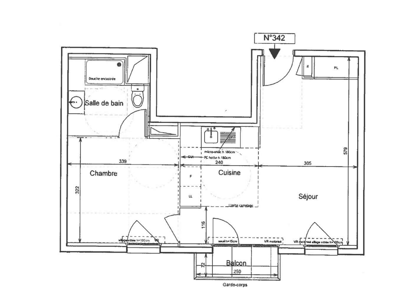 Un appartement de type 2 pièces (342) d'une surface de 42m² situé au 4ème étage avec ascenseur.