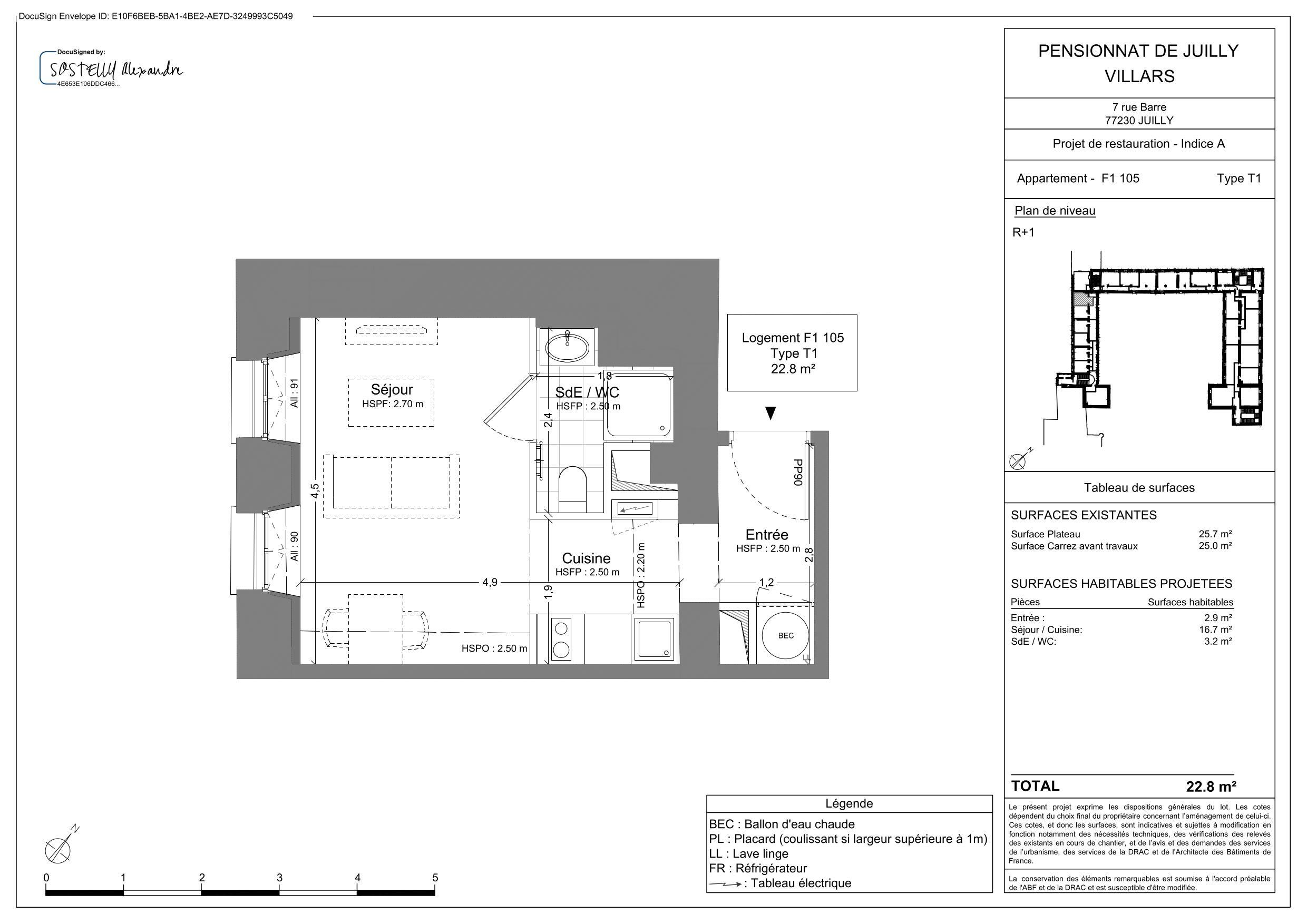 Un appartement de type Studio (F1-105) d'une surface de 22,80m² situé au 1er étage.
