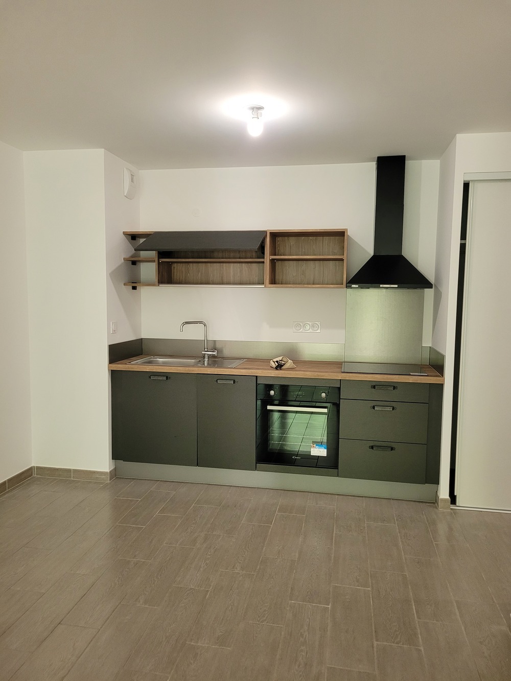 L'appartement dispose d'une cuisine équipée, il est loué avec un parking situé en sous-sol