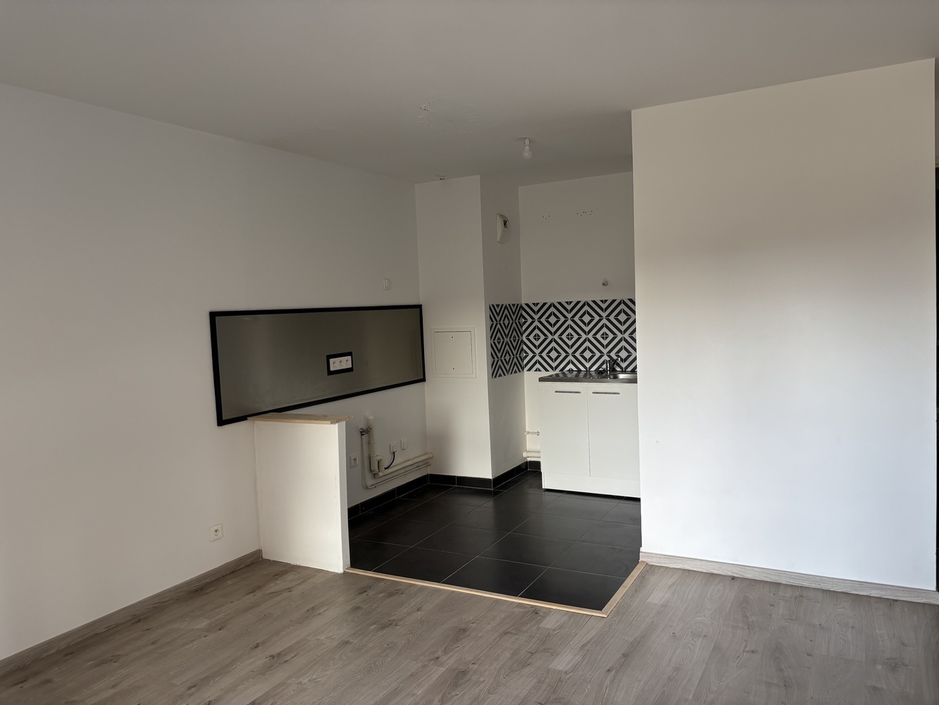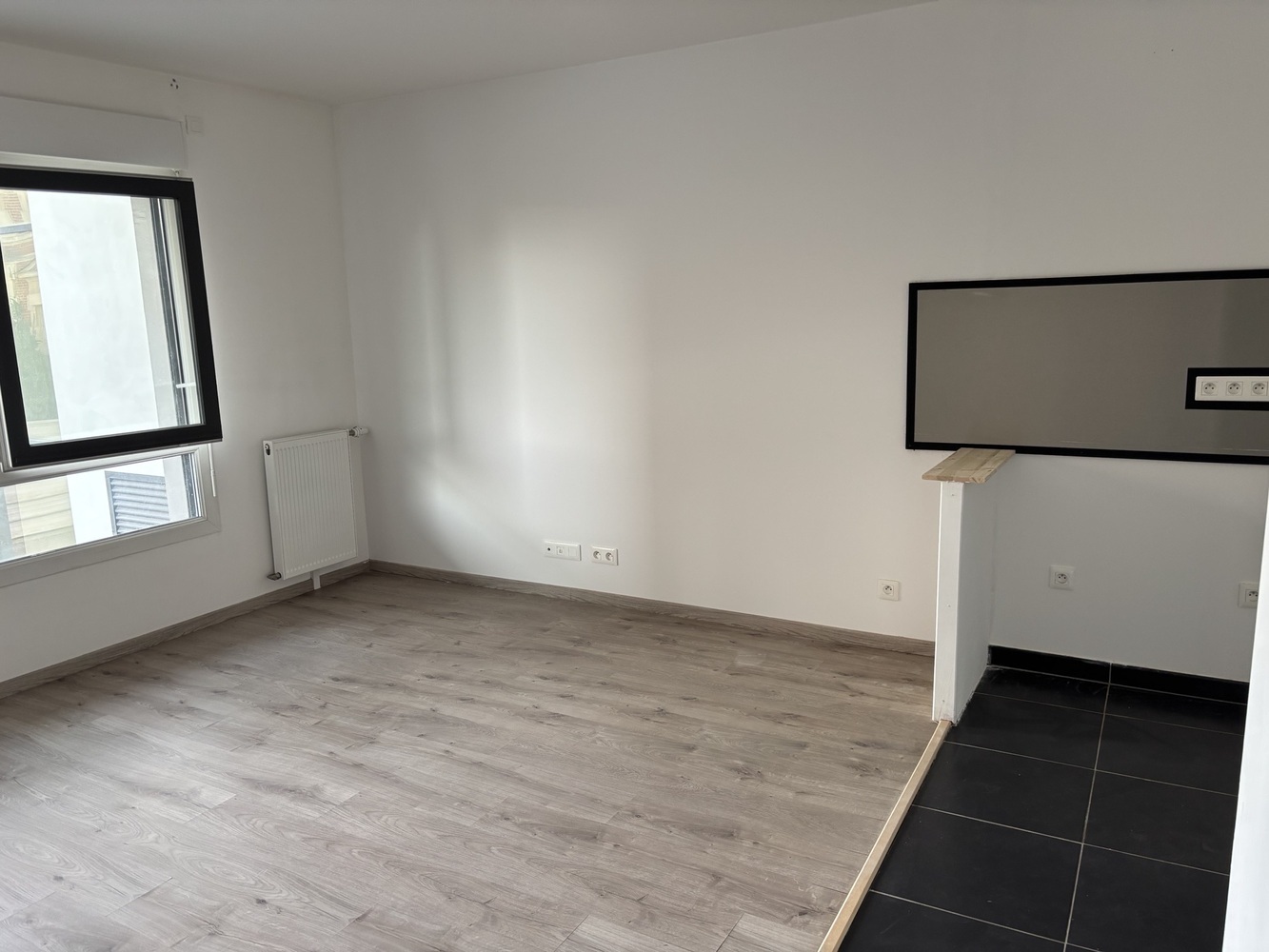 Rue de Lorraine, proche des stations de bus et à 9' de la gare de Mantes la Jolie (TER,TGV, Intercités, ligne J et N), commerces, cinéma, écoles, lycée et square. Dans un immeuble récent (2017), un appartement de type F2 (211) situé au premier étage comprenant : une entrée, un séjour avec une cuisine aménagée et équipée en plaques et hotte, une chambre et une salle de bains avec WC.