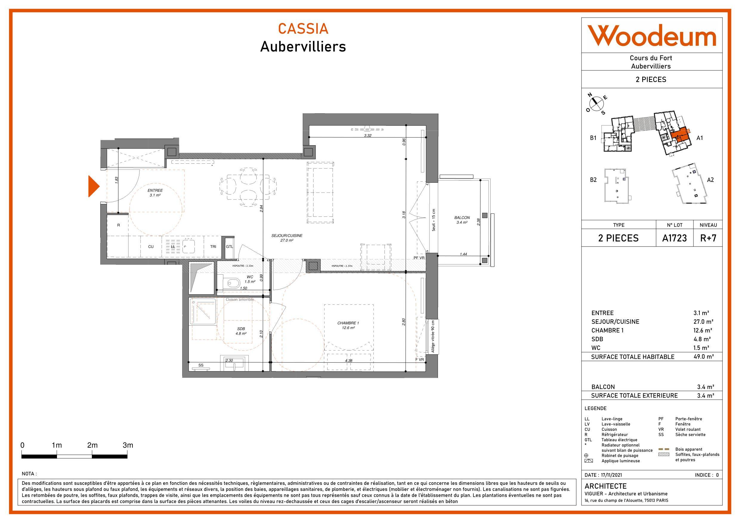 Un appartement de type T2 d'une surface de 49,00m2 situé au 7ème étage avec ascenseur.