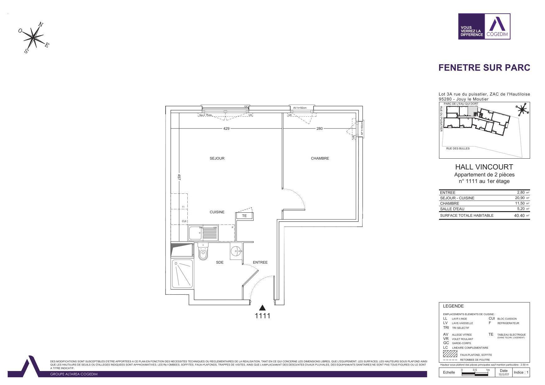 Rue du Puisatier, dans un immeuble récent, un appartement de type T2 d'une surface de 40,40m2 situé au 1er étage avec ascenseur.