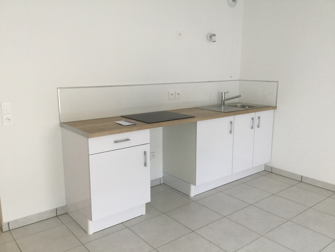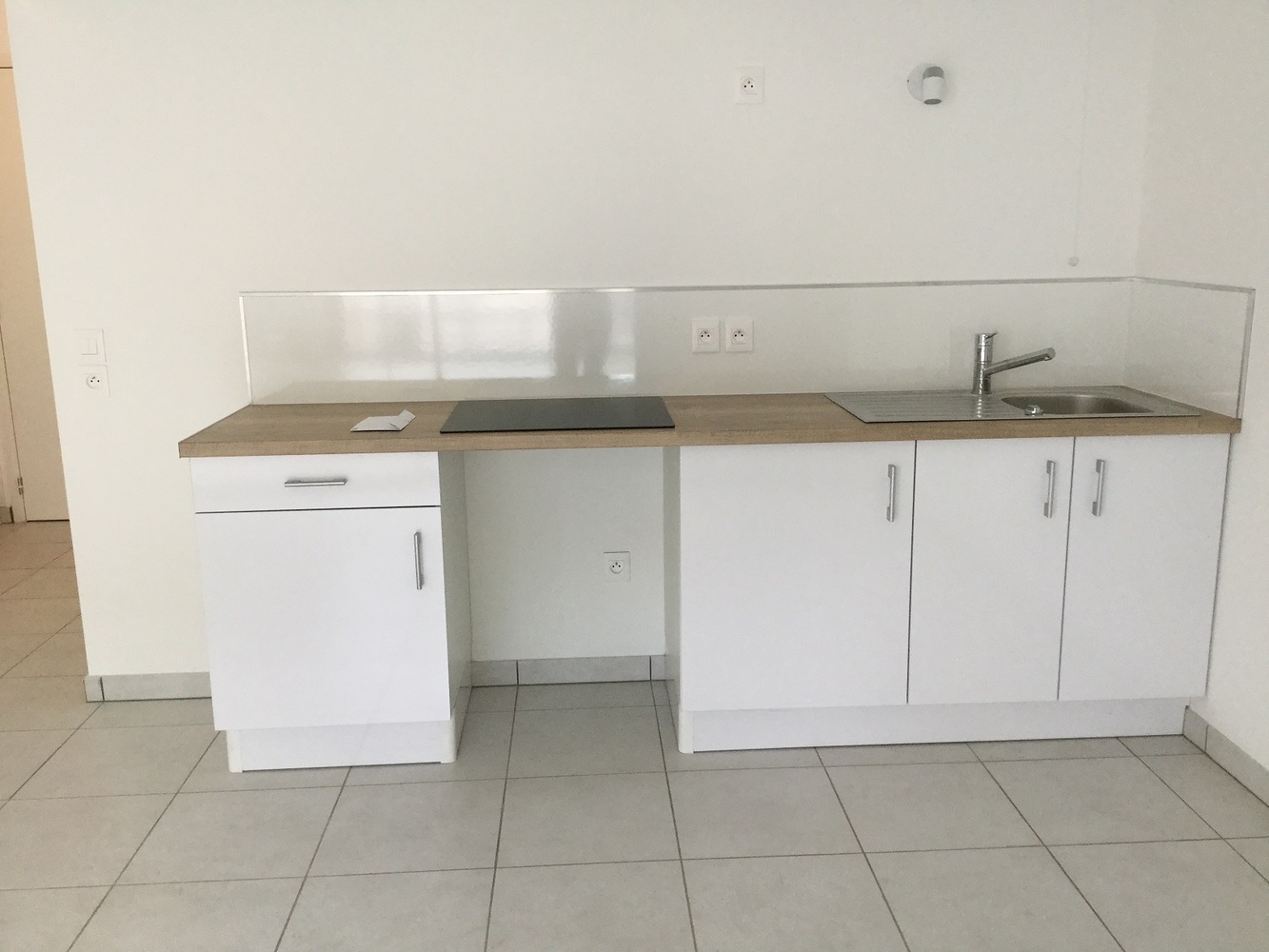 Composé d'une entrée avec placard, cuisine aménagée et équipée d'une plaque de cuisson vitrocéramique ouverte sur la pièce principale de 20 m2 ainsi qu'une grande salle d'eau avec WC.