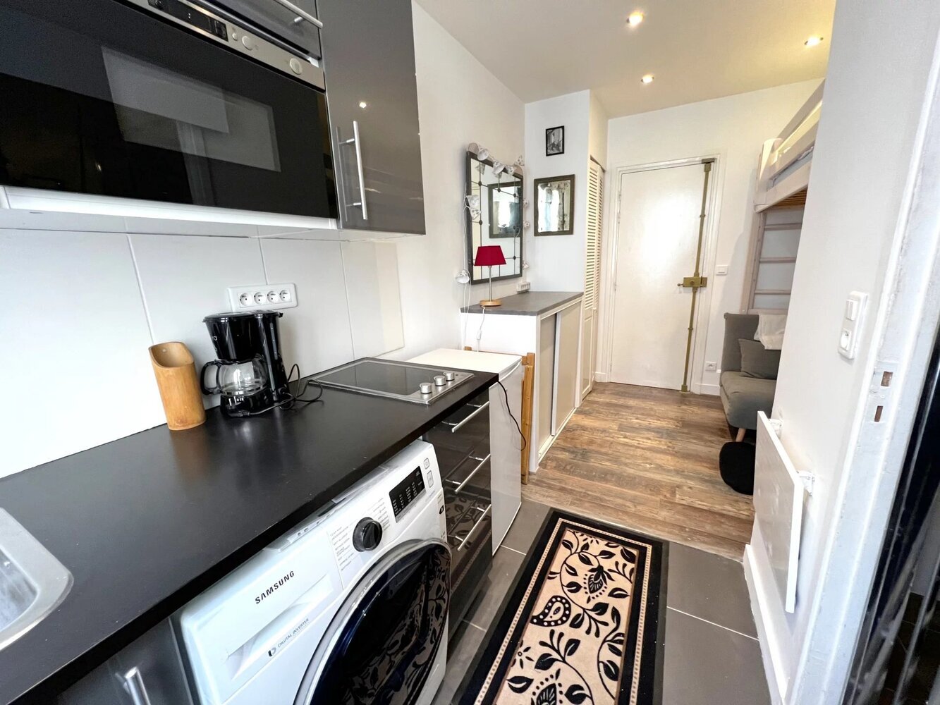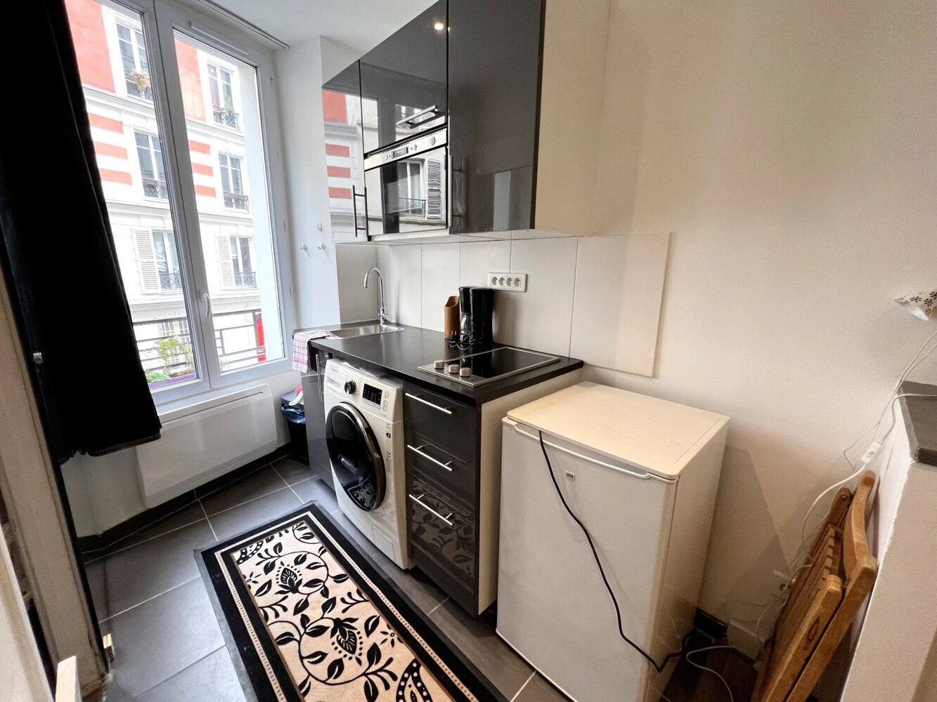 PARIS XVIIIème - Situé 15, Rue Letort à PARIS, à seulement quelques minutes à pieds du métro JULES JOFFRIN et de toutes commodités, dans une rue calme, au 1er étage, studio récemment rénové de 11m² environ vous offrant tous les équipements nécessaires à la vie courante : pièce de vie bien aménagée ouverte sur coin cuisine entièrement équipée, salle d'eau avec WC.