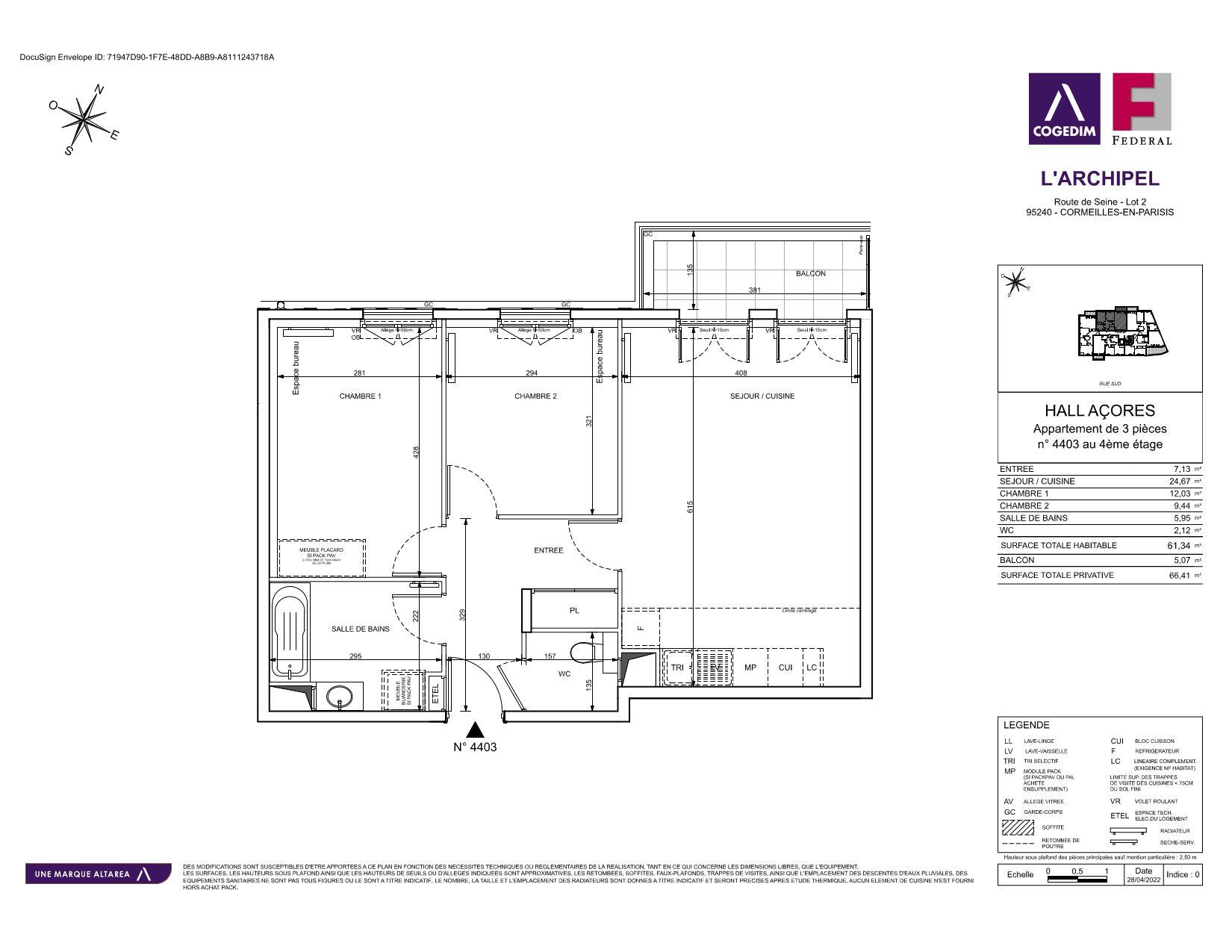 Un appartement de type T3 (4403) d'une surface de 61,34m2 situé au 4éme étage avec ascenseur.