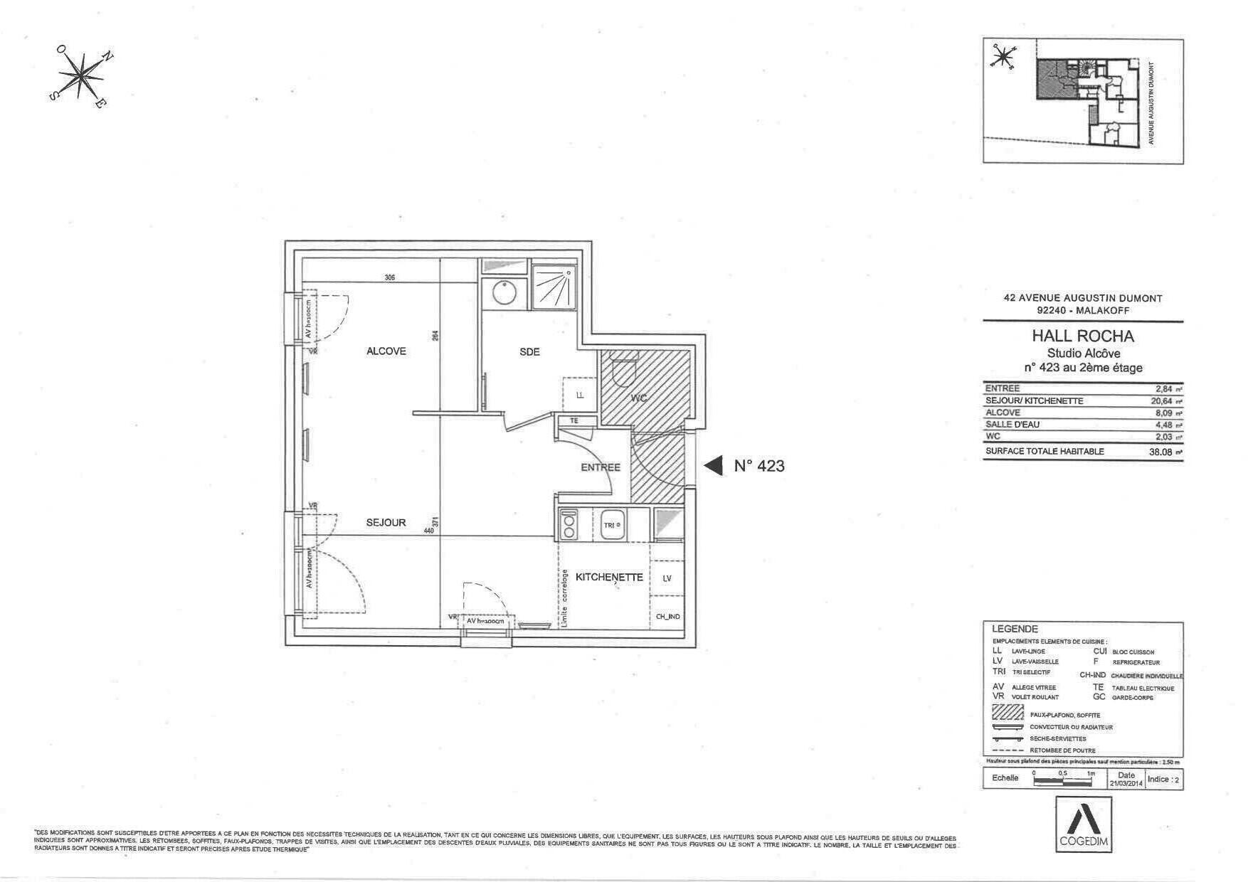 Un appartement de type T1 bis (423) d'une surface de 38,08m2 au 2me étage avec ascenseur.