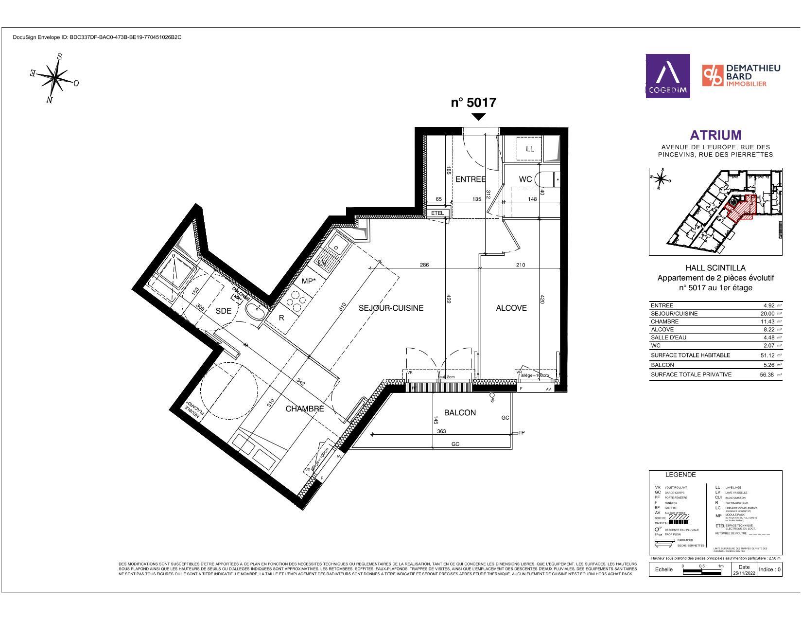 Ce 2 pièces bis de 51.12 m² au 1er étage offre un cadre de vie pratique et agréable.