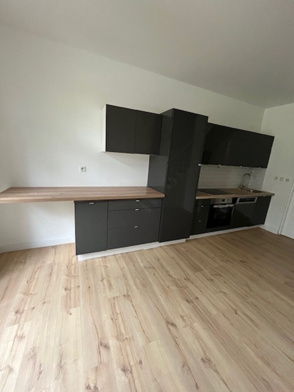 Elle est composée : d'une cuisine aménagée et équipée (plaques de cuisson, four, hotte et lave-vaisselle), d'un séjour donnant sur un jardin.