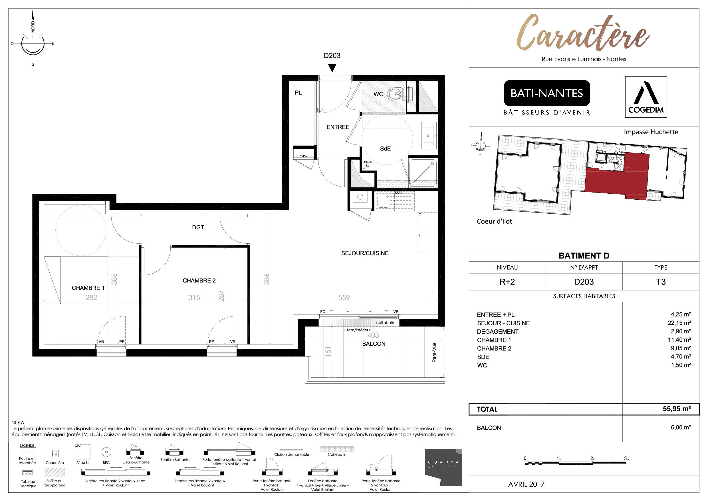 Très bel appartement T3 de 55,95m² au deuxième étage dans résidence récente comprenant un salon/ séjour, une cuisine aménagée, deux chambres, une salle de douche, des WC séparés et un balcon de 6m².