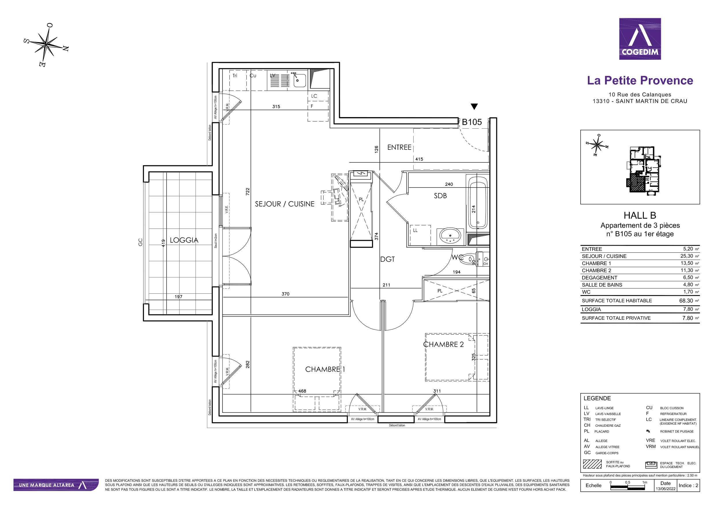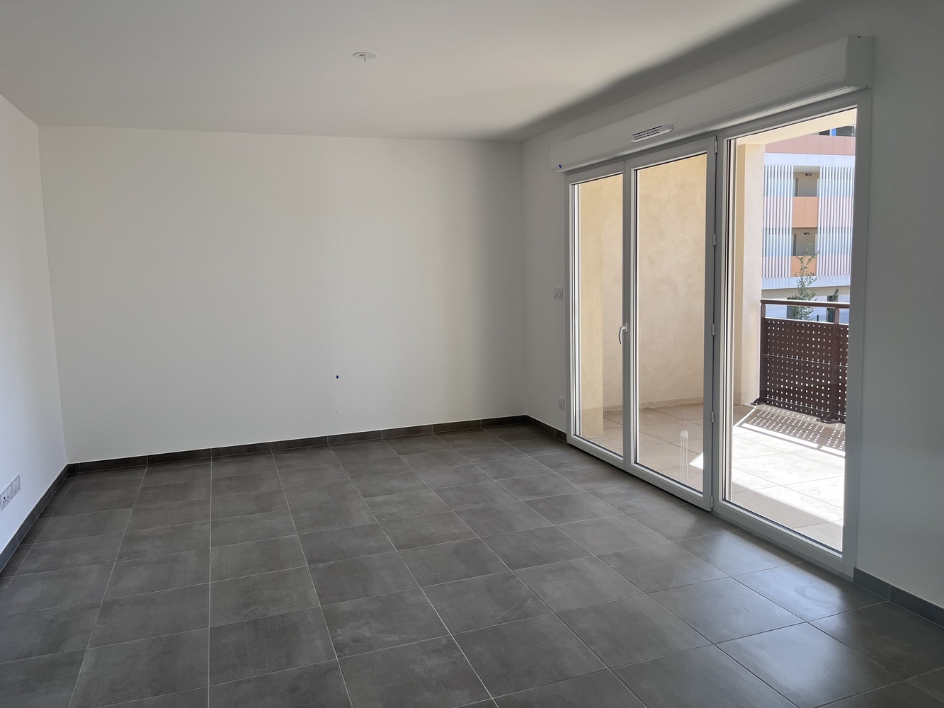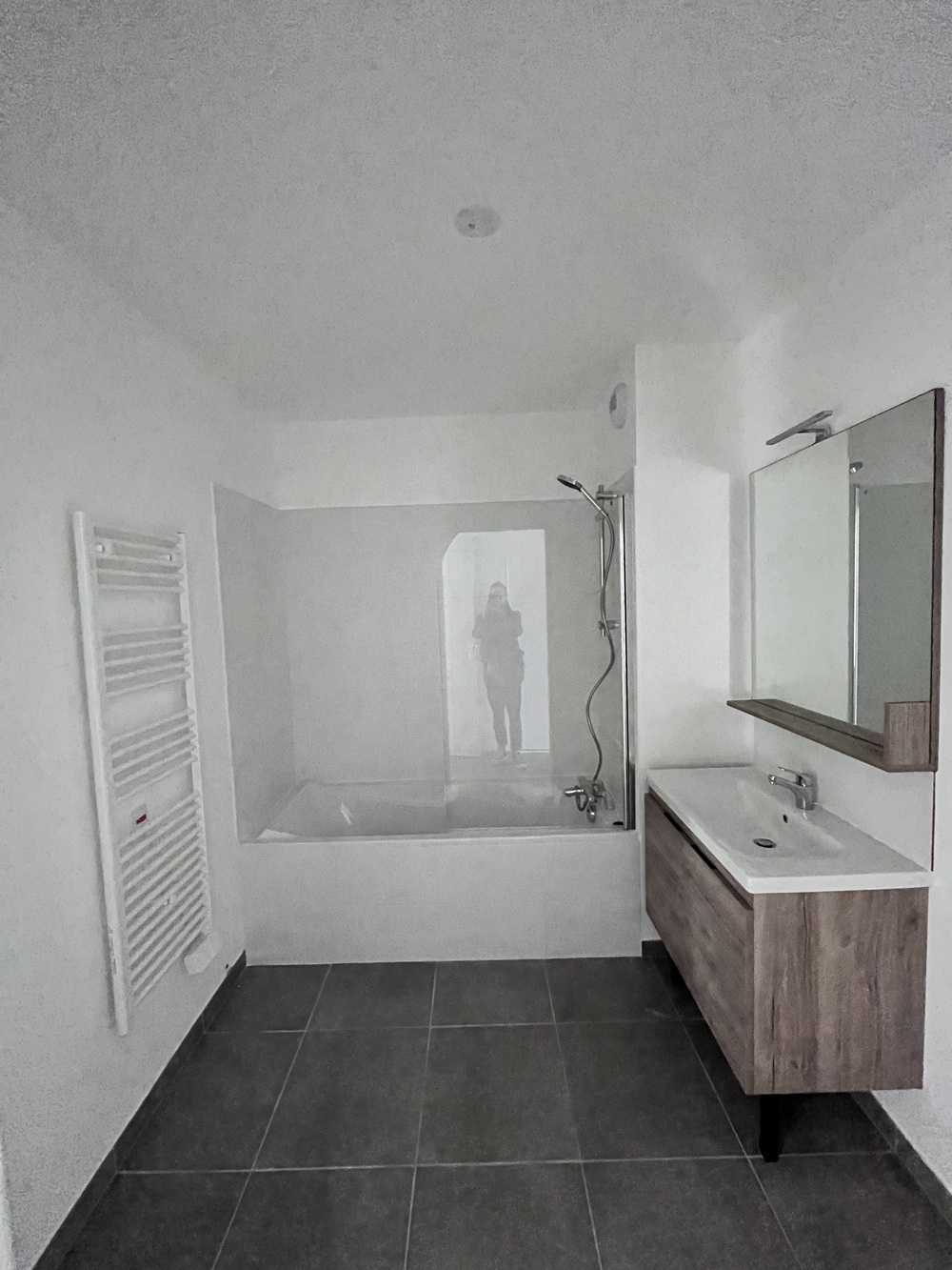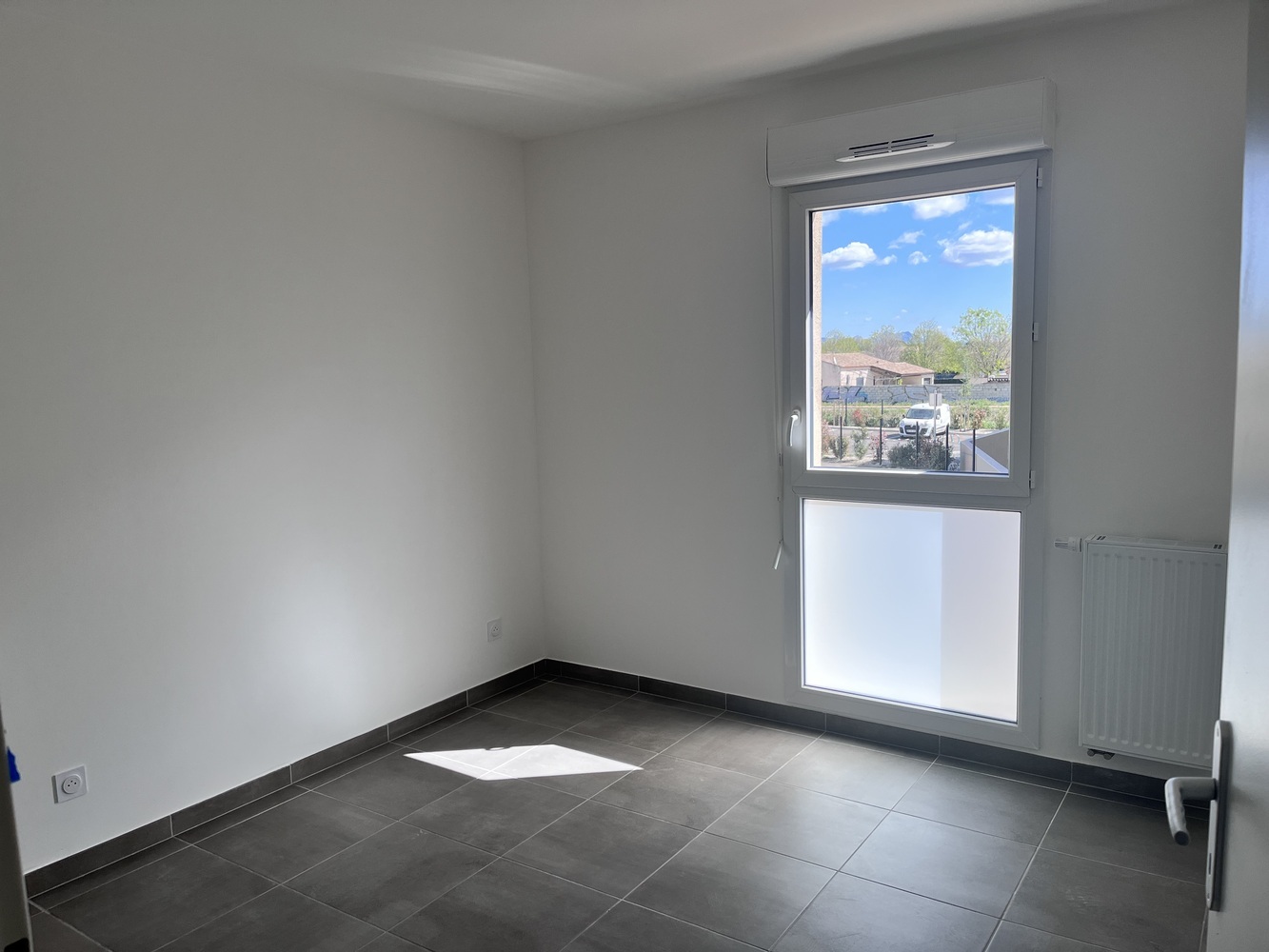 Appartement neuf de type 3 de 68.30 m² - Composé d'une entrée, une salle de bains et WC séparés, deux chambres, un séjour ouvert sur la cuisine aménagée équipée (plaque et hotte), une terrasse de 7.80 m².