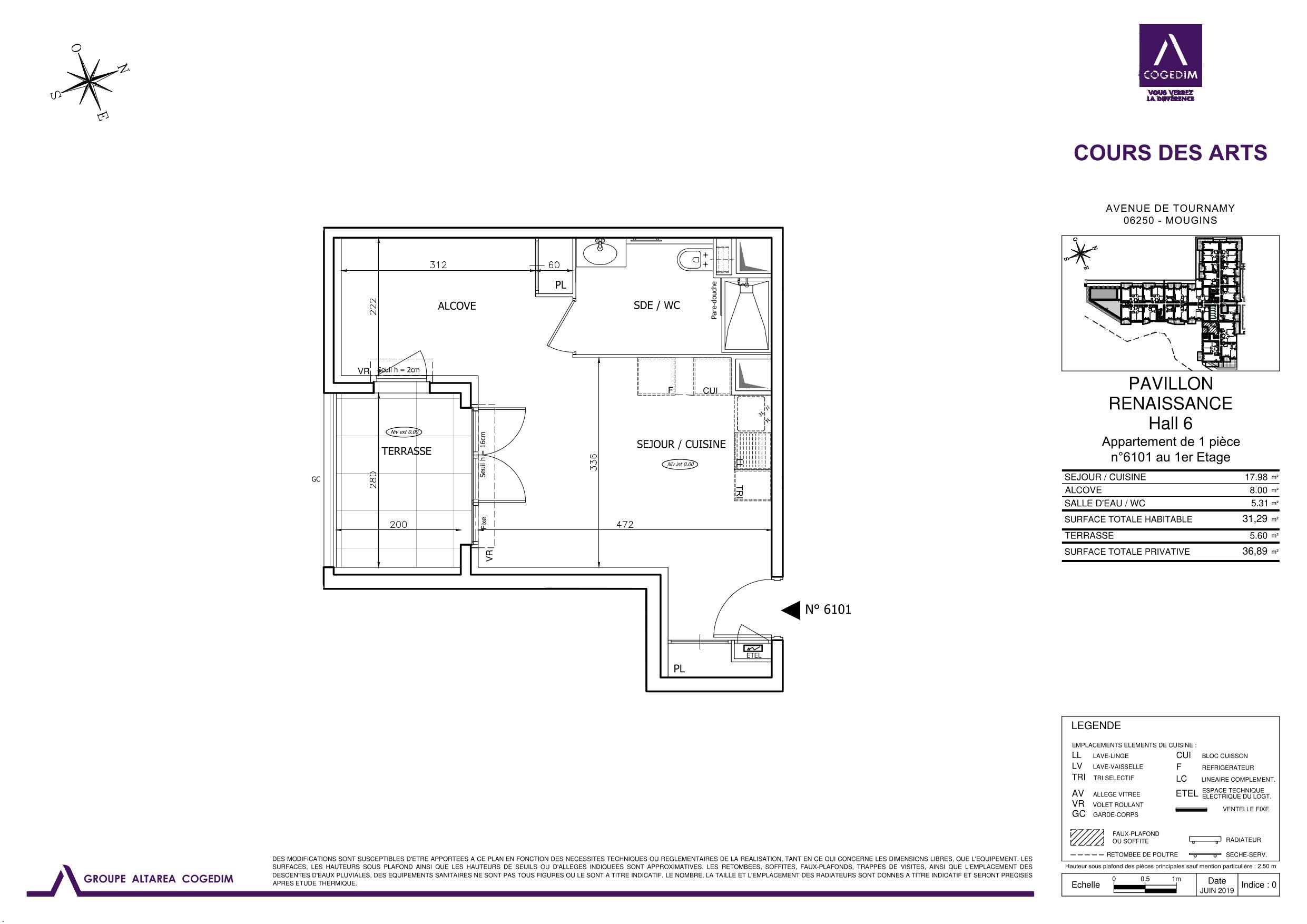 Dans résidence rescente de standing avec piscine en plein coeur d'un nouveau quartier proches toutes commodités, nous vous proposons en location l'appartement n°E6101 situé au 1er étage avec ascenseur.