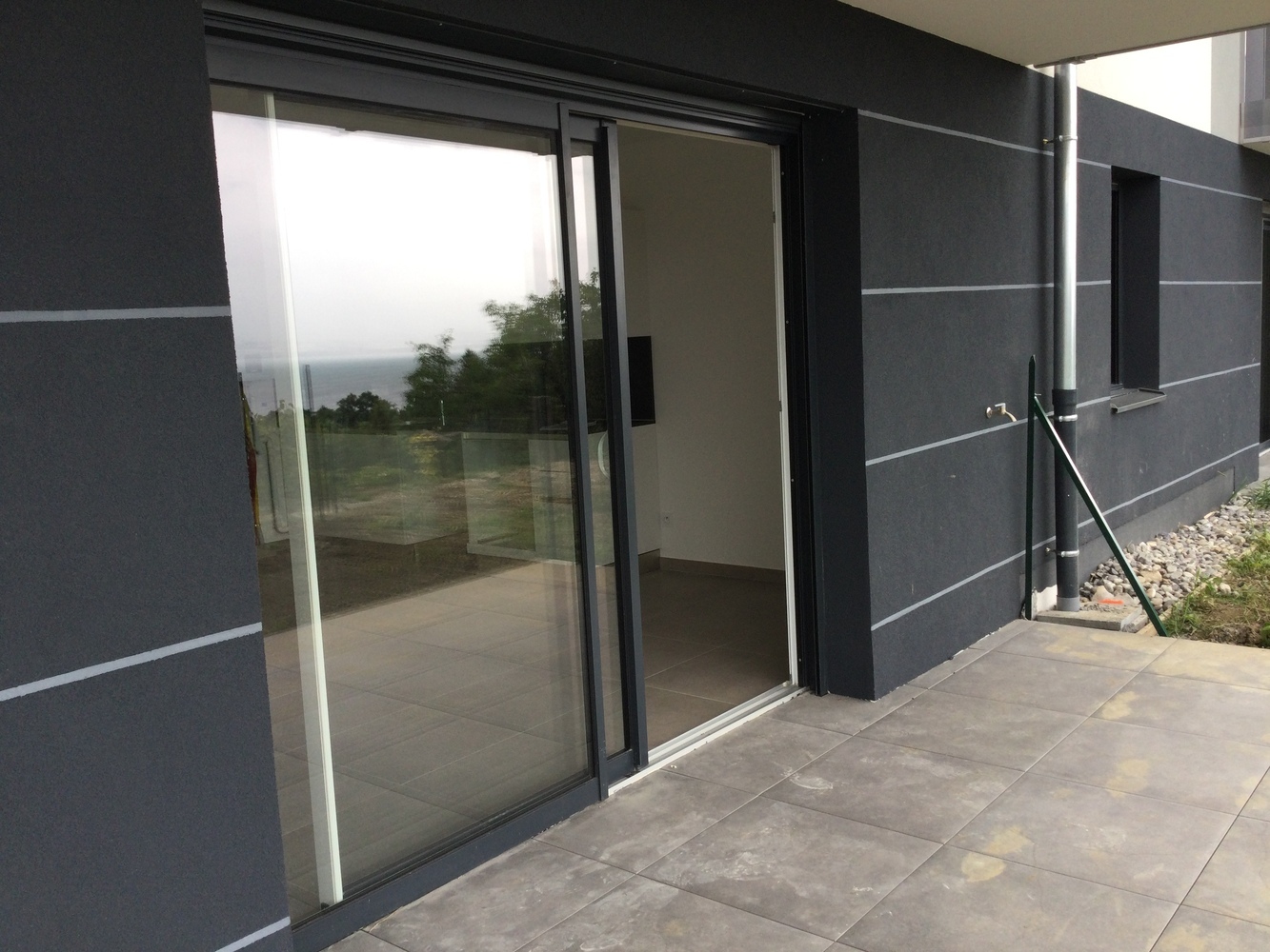 Appartement de type T3 situé au rez de chaussée avec terrasse de 16m2 et jardin de 130 m2, exposition Nord face au lac.